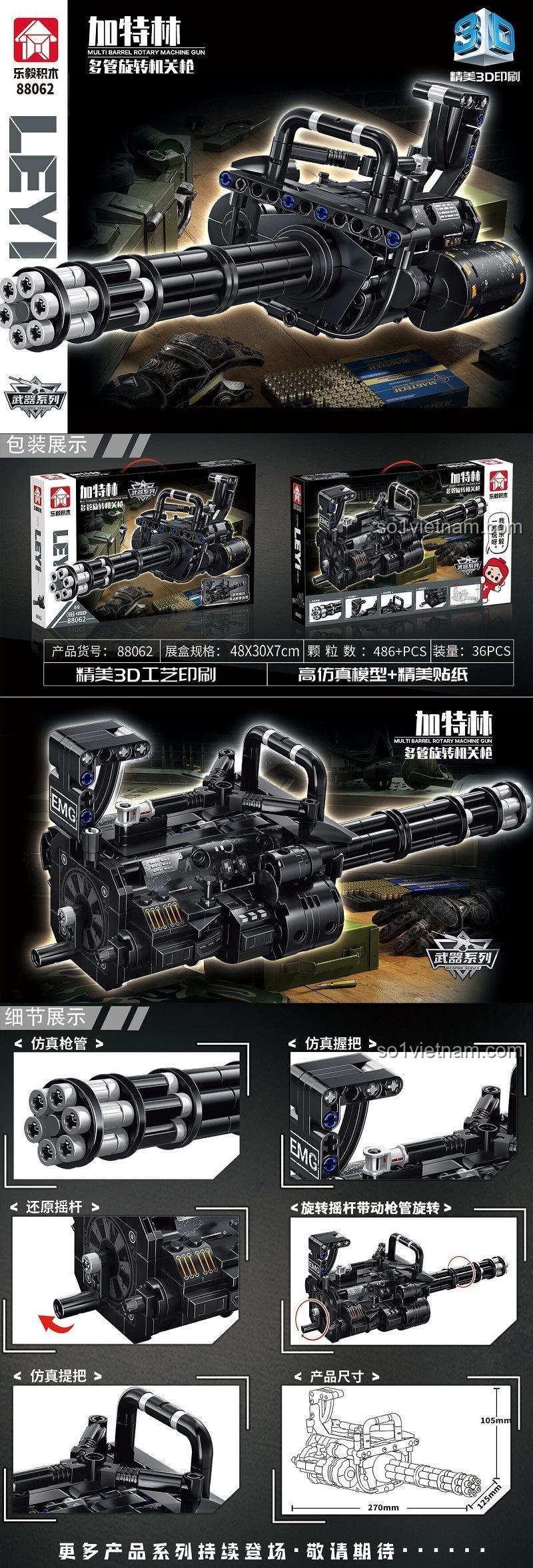 Bộ Lắp Ghép Súng Máy Gatling Đa Nòng Xoay 乐毅积木 88062 (486 Mảnh)