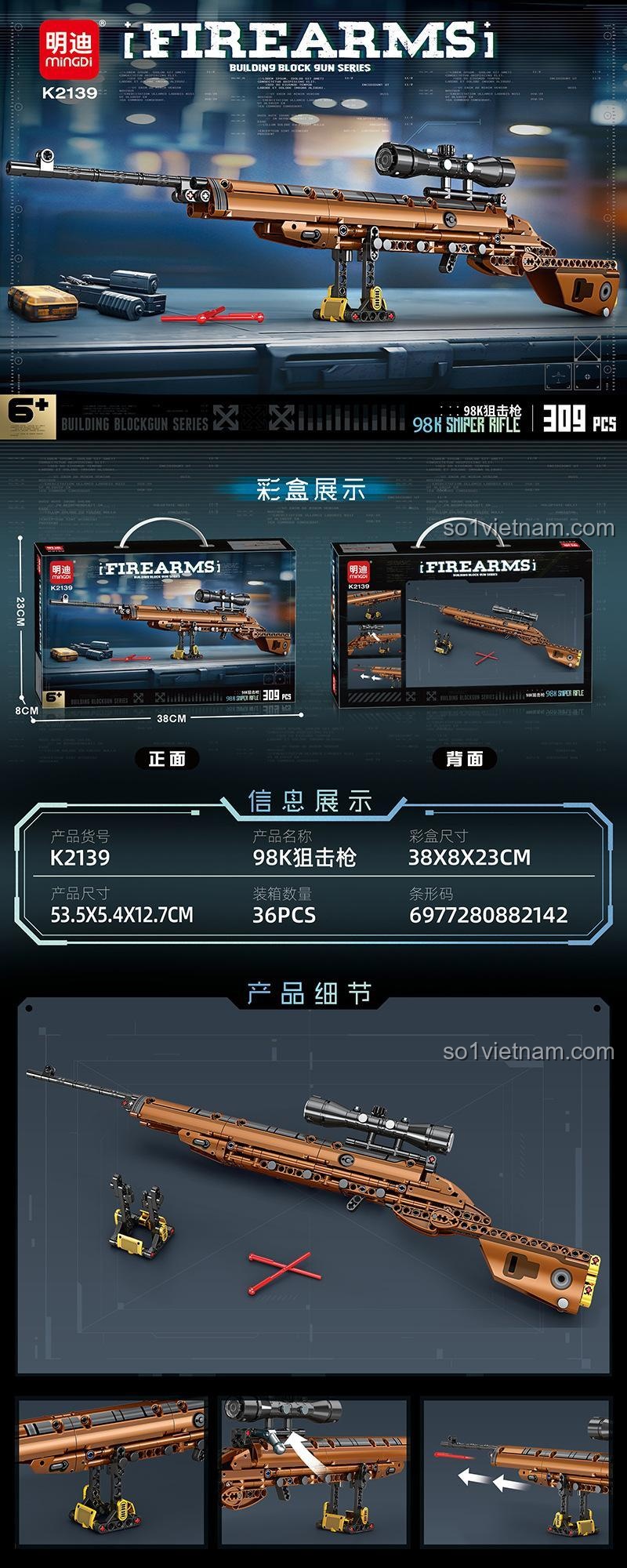 Chào mừng bố và các bé đến với thế giới mô hình quân sự đầy hấp dẫn! Hôm nay, chúng ta sẽ cùng nhau khám phá bộ lắp ghép Súng trường bắn tỉa 98K K2139 từ thương hiệu 明迪minGDi (磊宝LEIBAO), một sản phẩm hứa hẹn mang đến những giờ phút giải trí sáng tạo và bổ ích.