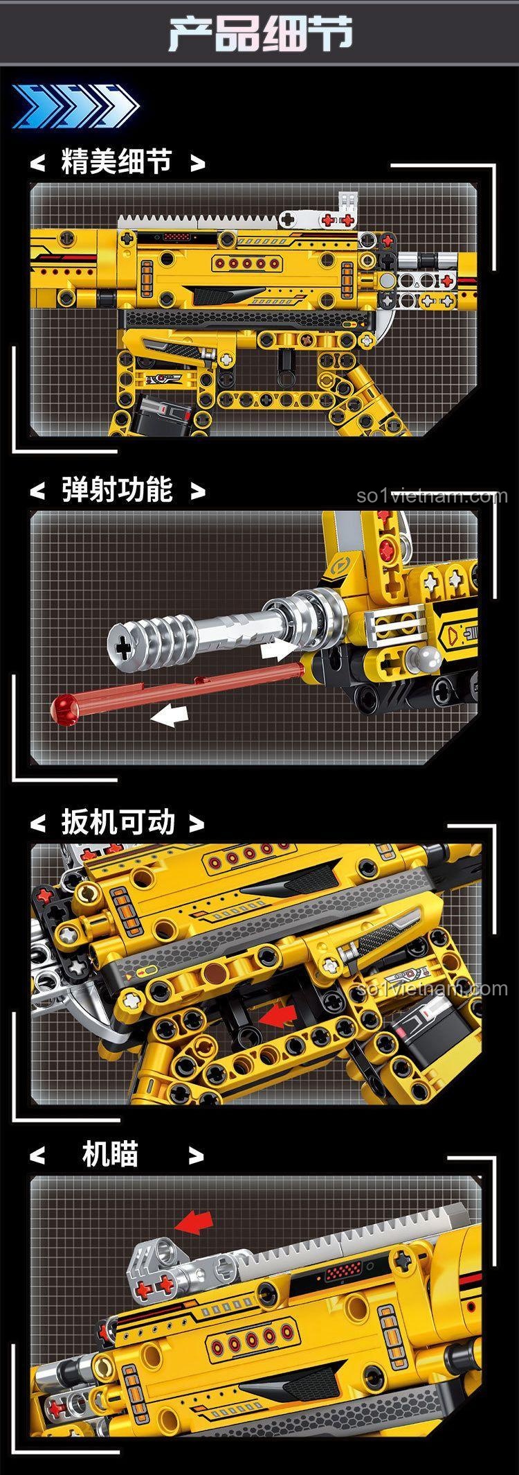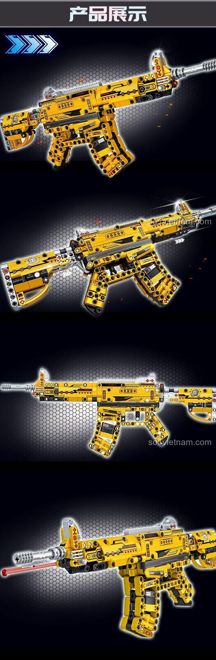 Bộ lắp ghép này không chỉ mô phỏng lại hình dáng của khẩu súng mà còn gợi lên tinh thần chiến đấu, sự dũng cảm và tinh thần đồng đội. Nó là món quà tuyệt vời để bé có thể hóa thân thành những người lính dũng cảm, tham gia vào các trận chiến tưởng tượng, rèn luyện khả năng tư duy chiến thuật và giải quyết vấn đề.