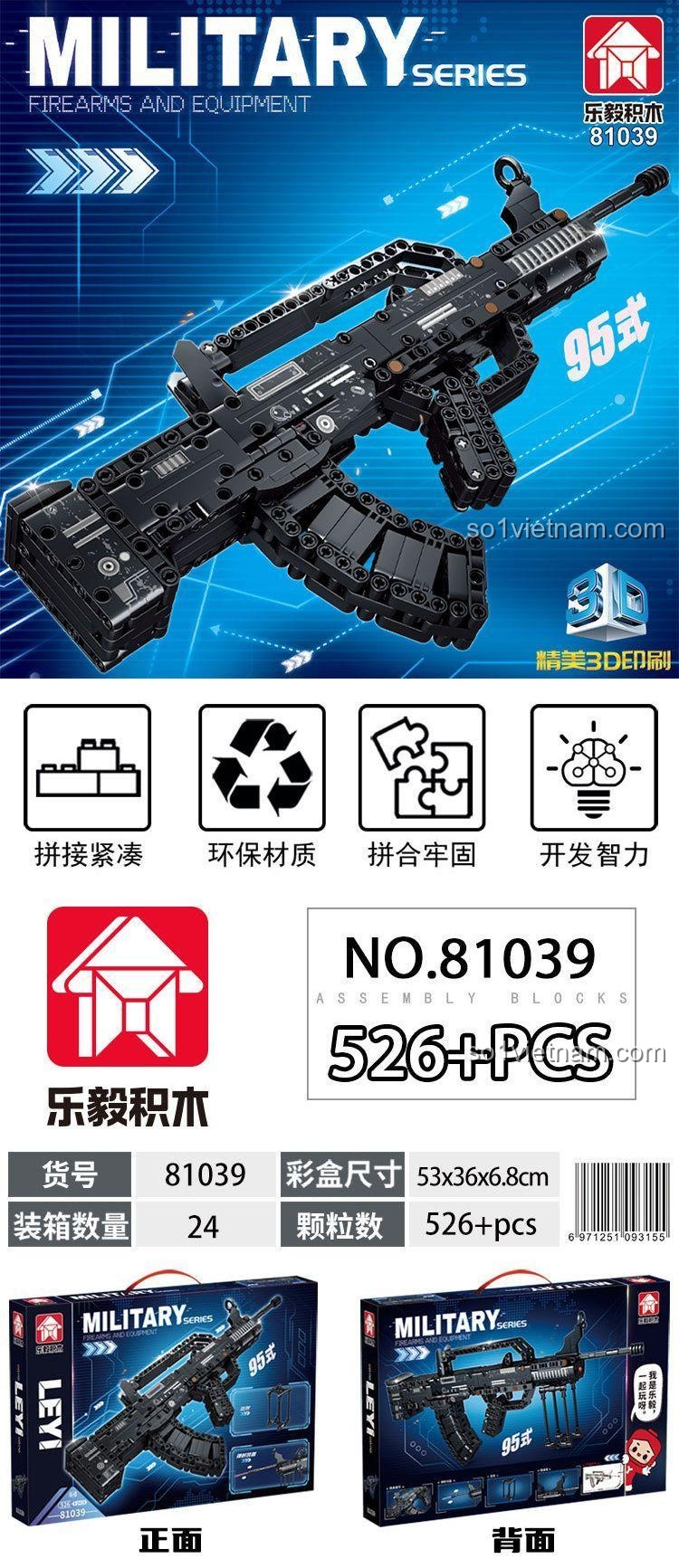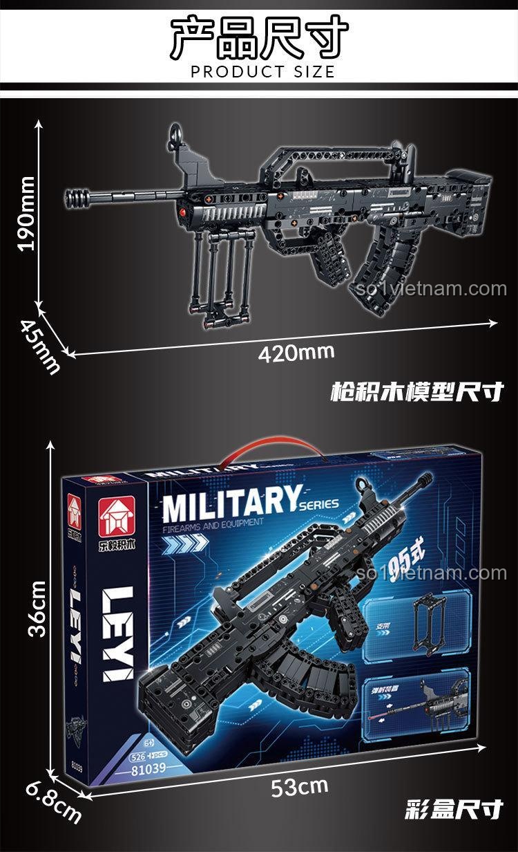 Bộ lắp ghép Súng trường tấn công 95式 LEVI 81039 nổi bật với thiết kế mô phỏng chân thực từng đường nét của vũ khí quân sự hiện đại. Với 526 mảnh ghép chất lượng cao, bé có thể tự tay xây dựng nên một mô hình súng trường uy lực, chi tiết đến từng bộ phận. Đặc biệt, mô hình còn có khả năng bắn đạn, mang đến trải nghiệm chân thực và hấp dẫn hơn bao giờ hết. Kèm theo đó là giá đỡ súng tiện lợi, giúp trưng bày mô hình một cách ấn tượng.