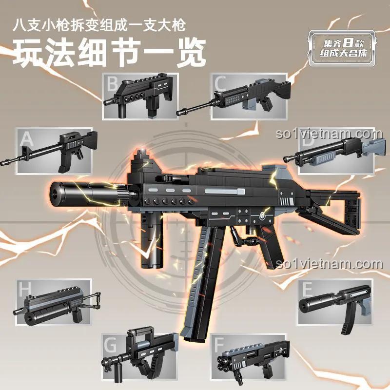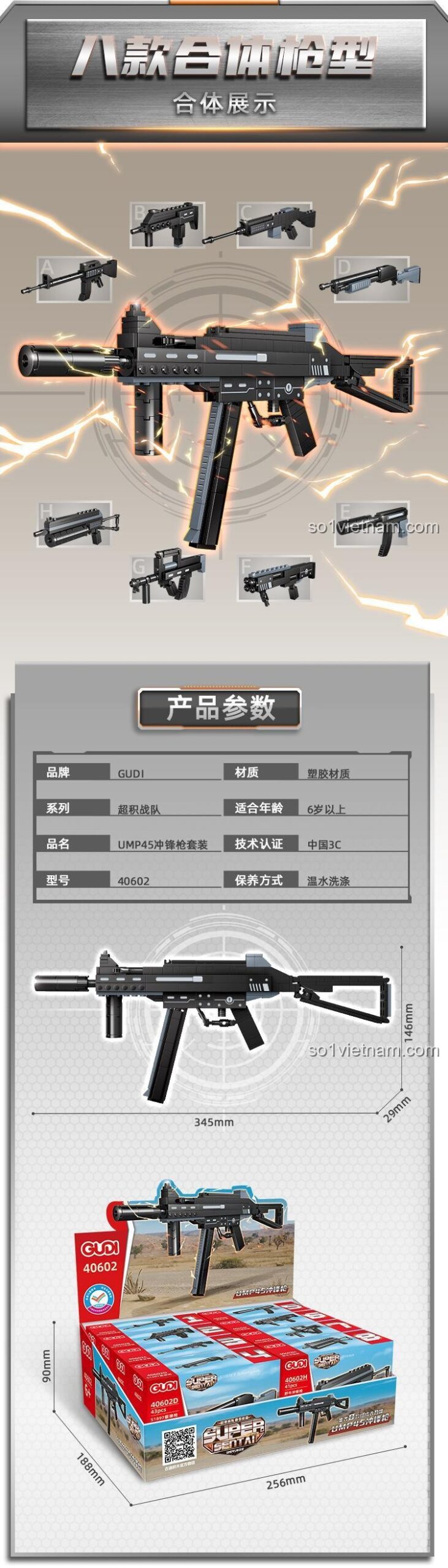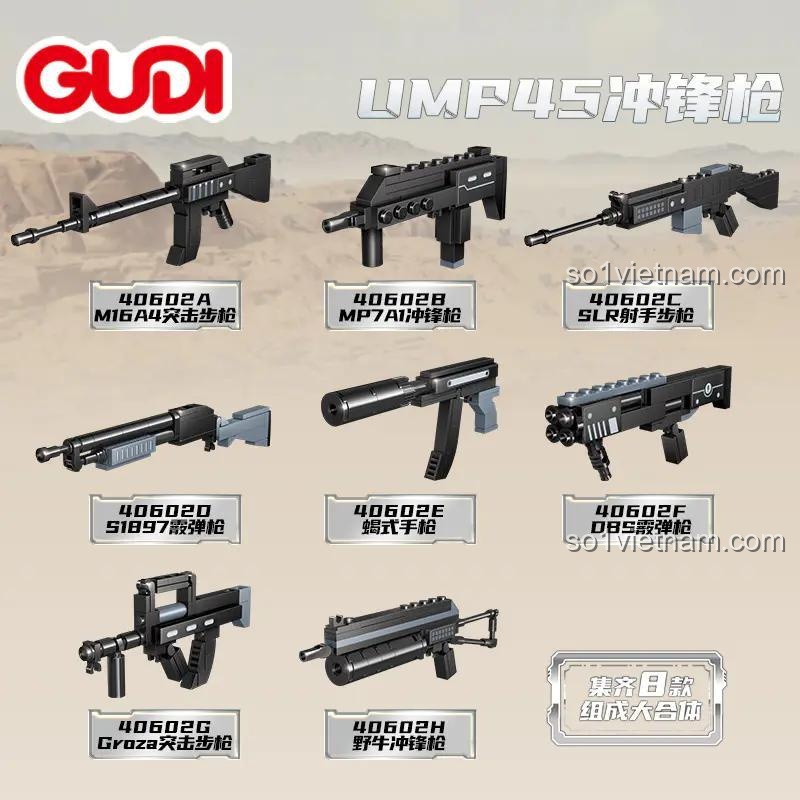 Bộ Lắp Ghép Súng UMP45 GUDI 40602 – 8 Mẫu Lắp Ráp (351 Mảnh)