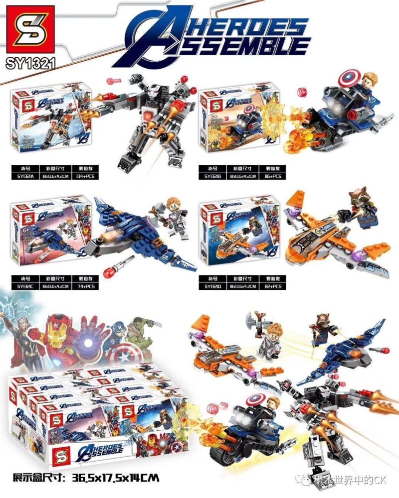 Bộ sản phẩm SY1321 là một bộ sưu tập 4 trong 1, bao gồm 4 mô hình riêng biệt: Robot War Machine Buster, Mô tô của Captain America, Phi cơ Quinjet của Thor, và Tàu vũ trụ Milano của Rocket Raccoon. Đi kèm với mỗi mô hình là một minifigure siêu anh hùng tương ứng, tổng cộng có 4 minifigures trong cả bộ.