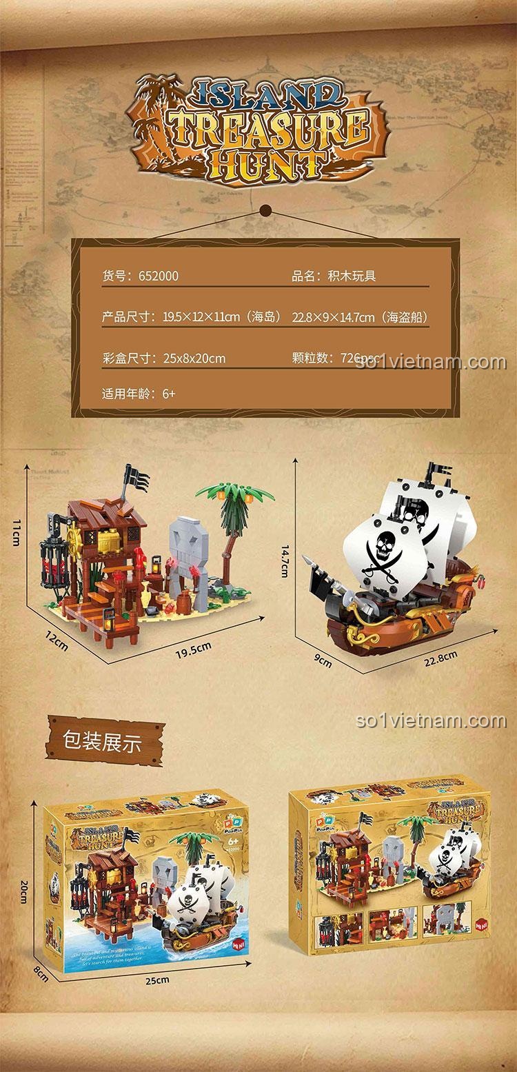Với kích thước mô hình đảo là 19.5 x 12 x 11 cm và tàu là 22.8 x 9 x 14.7 cm, bộ lắp ghép này không chỉ là món đồ chơi mà còn là một vật phẩm trang trí độc đáo, tô điểm thêm cho không gian phòng của bé.