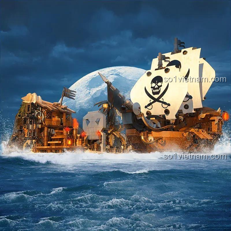 - Tàu Cướp Biển Chi Tiết: Bé có thể tự tay lắp ráp từng bộ phận của con tàu, từ thân tàu, cột buồm, cánh buồm in hình đầu lâu, cho đến các chi tiết nhỏ như bánh lái, đèn lồng, tạo nên một kiệt tác thu nhỏ.