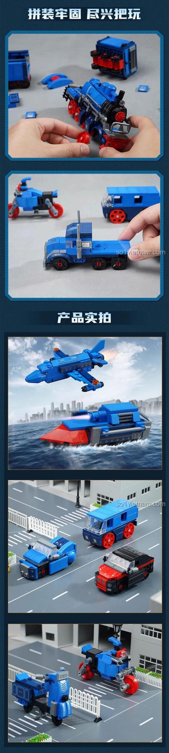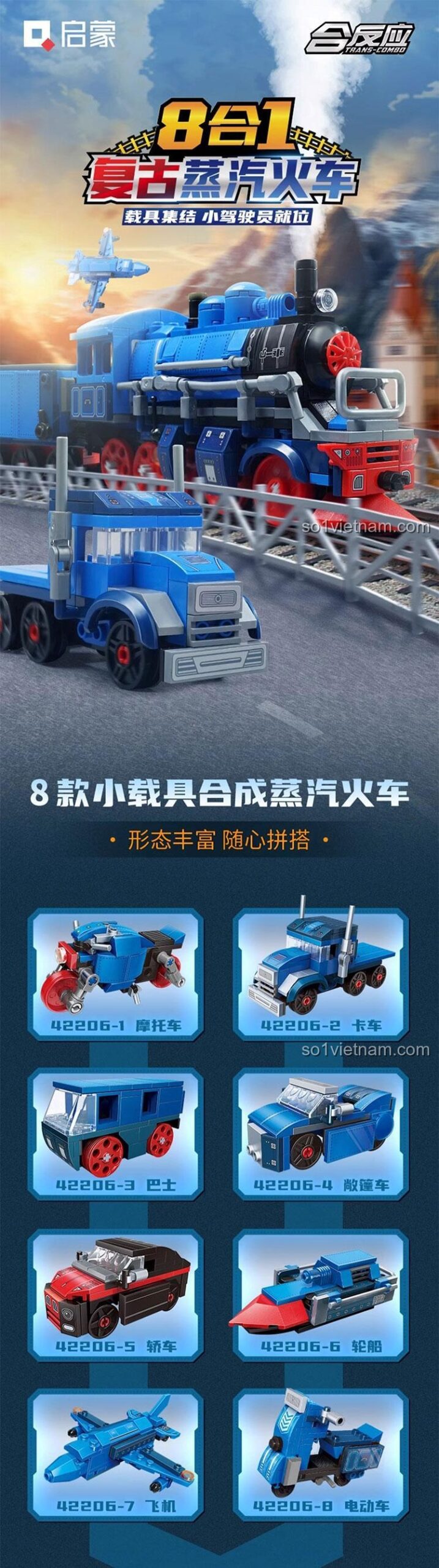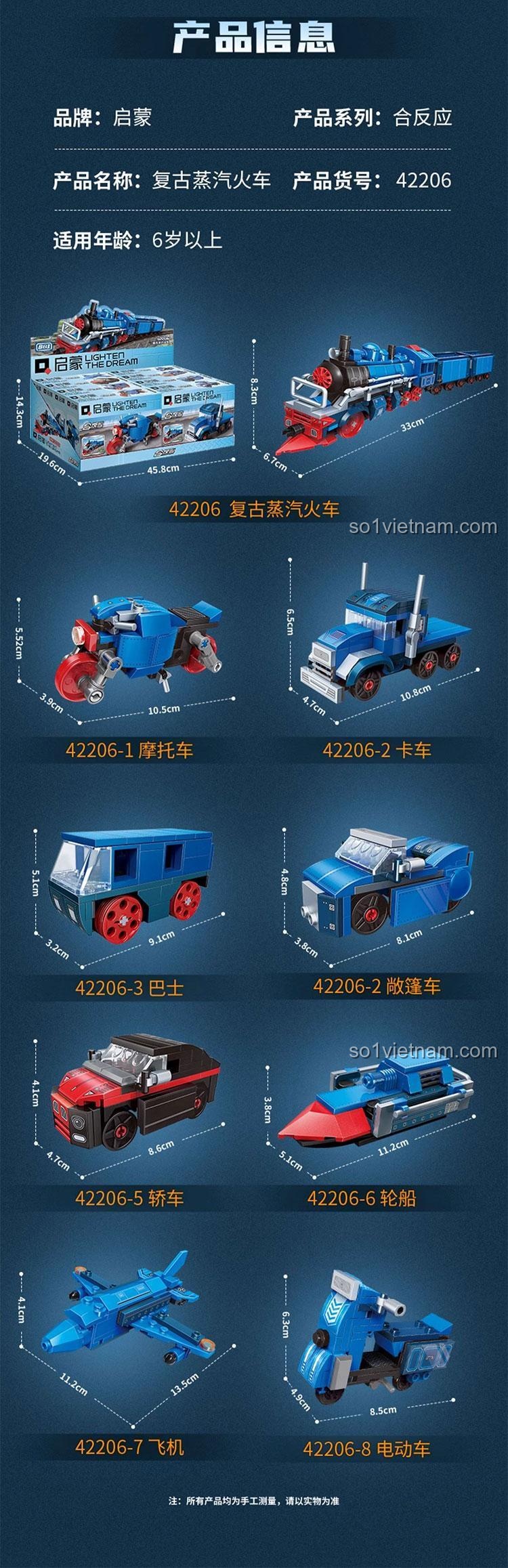 Điểm đặc biệt nhất là khả năng lắp ráp thành 8 mô hình khác nhau, bao gồm cả tàu hơi nước cổ điển và nhiều loại phương tiện hiện đại khác.