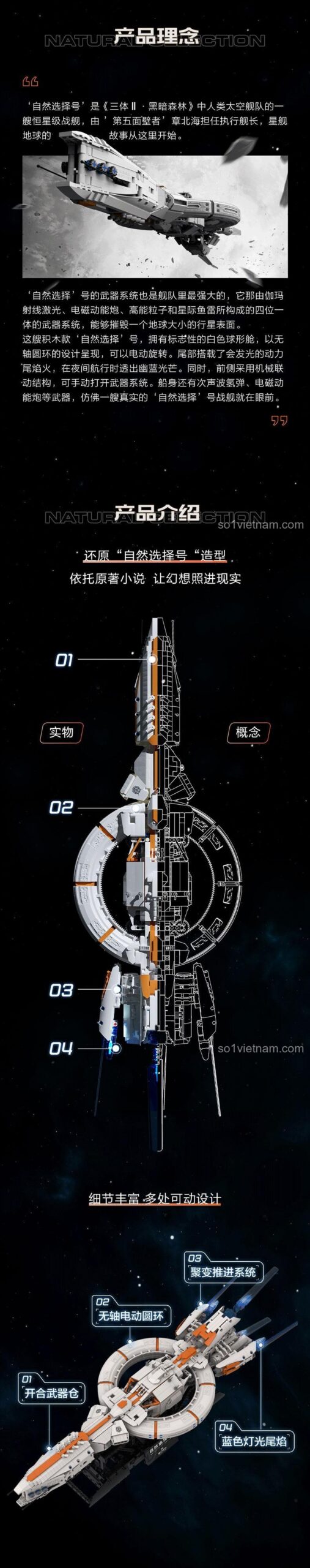 Chào mừng bạn đến với thế giới của Tam Thể, nơi trí tưởng tượng bay cao và những con tàu vũ trụ vĩ đại trở thành hiện thực! Bộ lắp ghép Tàu Vũ Trụ Tự Nhiên Lựa Chọn (Natural Selection) với 2686 mảnh ghép là một lời tri ân sâu sắc đến kiệt tác văn học của Lưu Từ Hân. Đây không chỉ là một món đồ chơi, mà là một hành trình khám phá vũ trụ, một biểu tượng của sự kiên cường và trí tuệ con người.