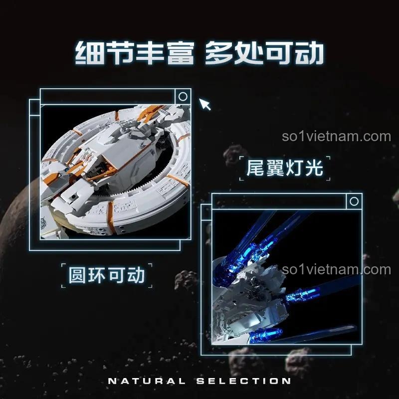 Bộ lắp ghép Tàu Vũ Trụ Tự Nhiên Lựa Chọn không chỉ đẹp mắt mà còn mang đến những tính năng tương tác thú vị: