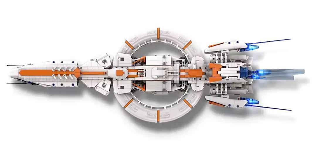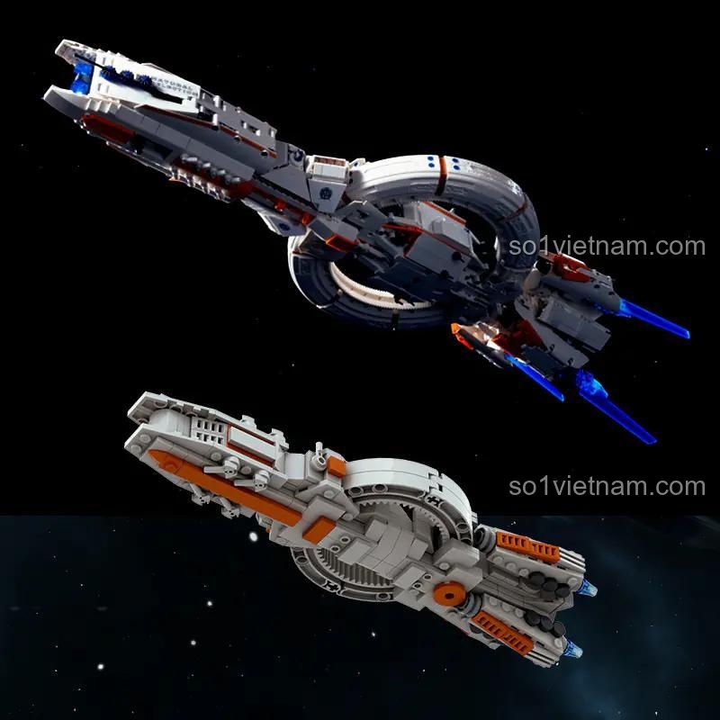 - Chi tiết độc đáo: Vòng tròn trung tâm có thể xoay linh hoạt, đèn đuôi tàu phát sáng xanh dương rực rỡ, cùng các chi tiết động cơ tên lửa được mô phỏng sống động, tất cả tạo nên một con tàu vũ trụ sống động như bước ra từ trang sách.