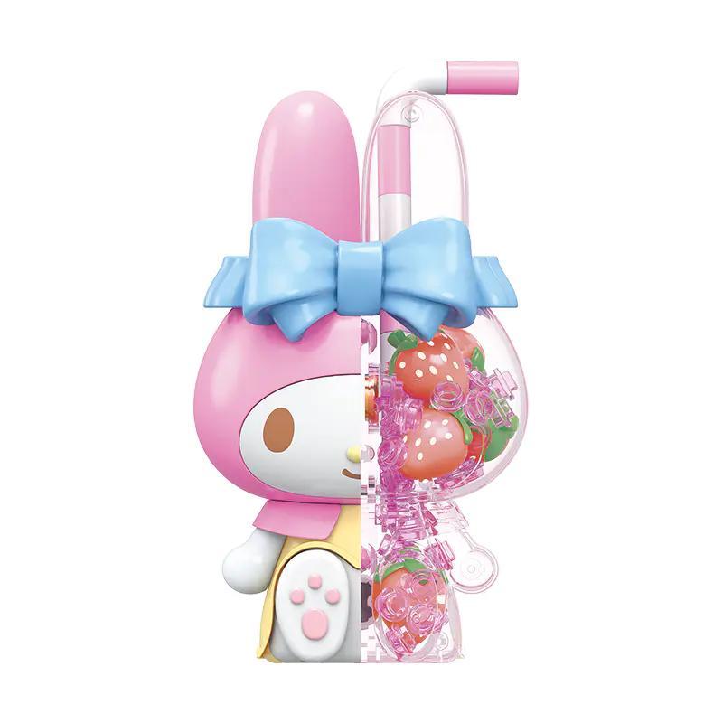 Điểm đặc biệt của đồ chơi lắp ráp My Melody Nước Ngọt Dâu Tây là thiết kế nửa trong suốt độc đáo, cho phép nhìn thấy các phụ kiện dâu tây bên trong. Ngoài ra, ống hút của mô hình có thể di chuyển, tạo ra hiệu ứng vui nhộn như đang uống nước thật, kích thích trí tưởng tượng của bé.