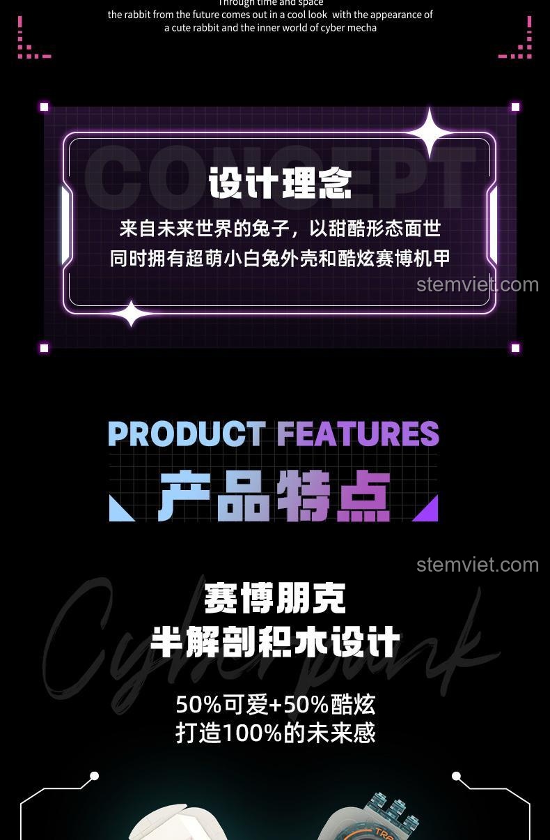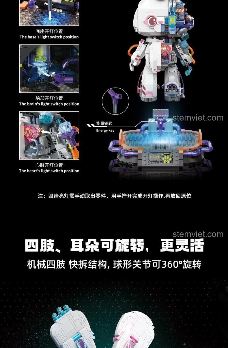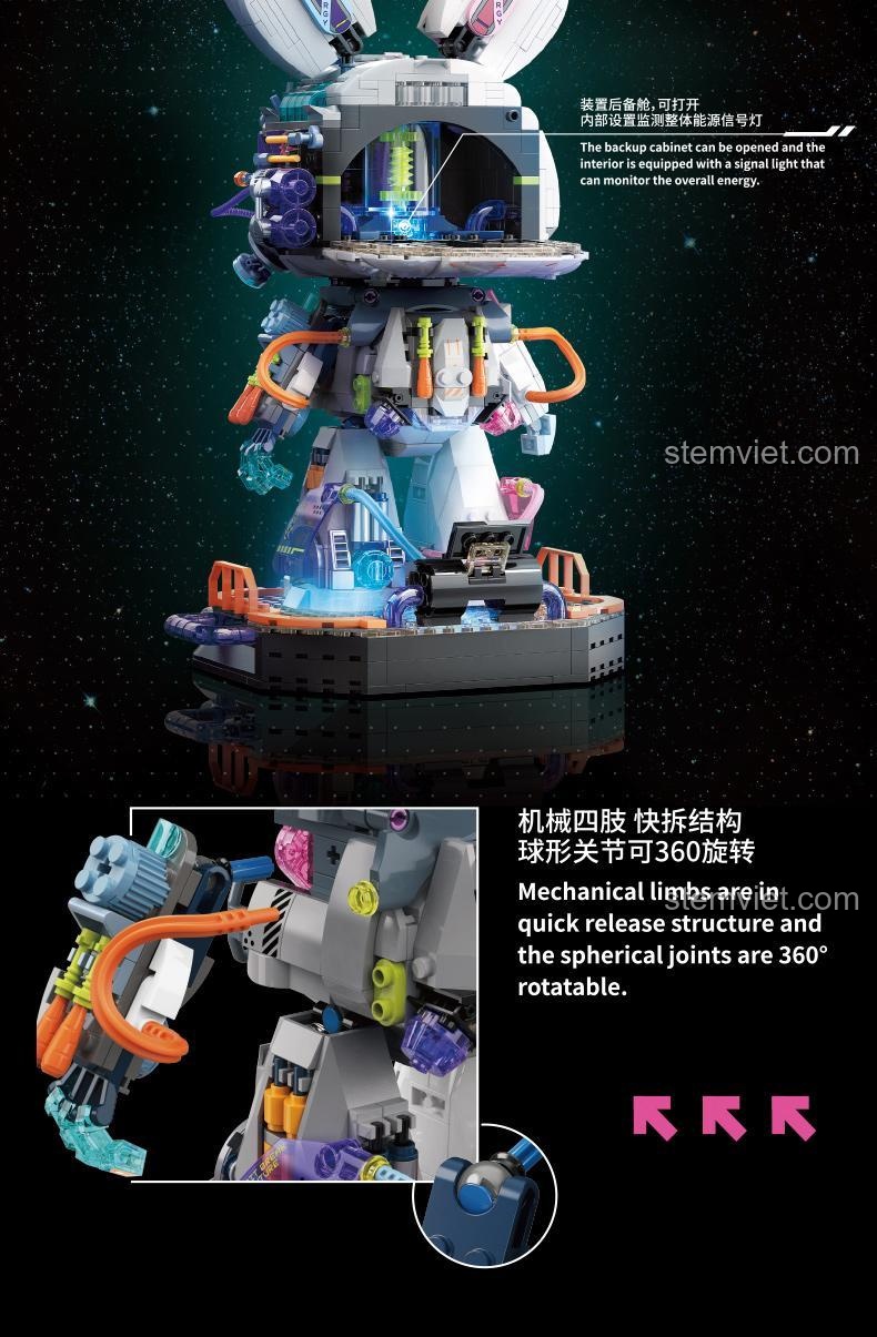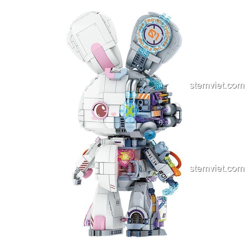 - Kết hợp với các bộ đồ chơi xây dựng thành phố tương lai để tạo ra một bối cảnh sống động cho chú thỏ máy.
