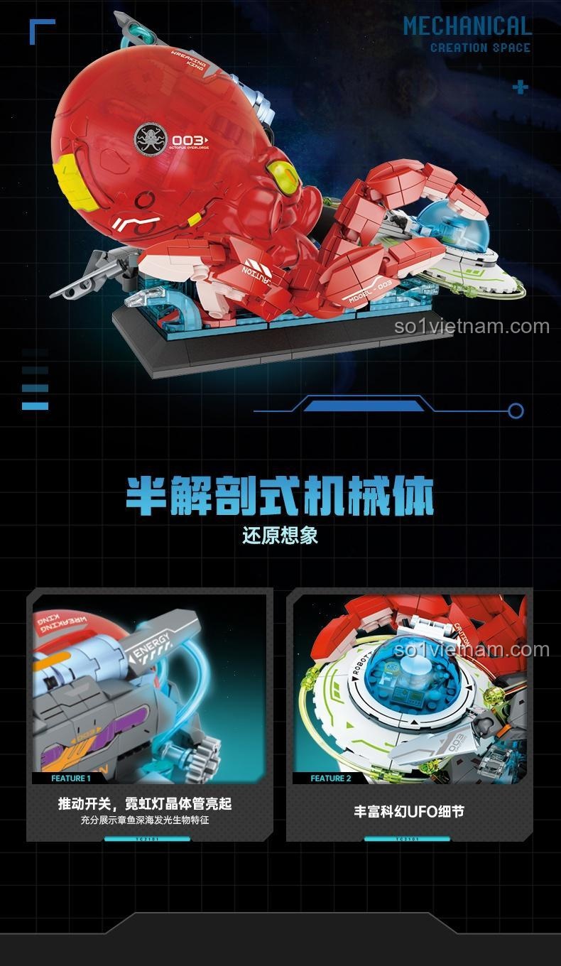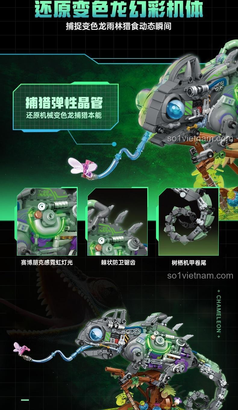 Không chỉ dừng lại ở vẻ ngoài ấn tượng, đồ chơi lắp ráp TC2101 Biến Thể Cơ Khí Tắc Kè Hoa Neon còn sở hữu nhiều tính năng cơ bản và đặc biệt, mang đến trải nghiệm chơi cực kỳ thú vị. Điểm nhấn nổi bật nhất chính là hệ thống đèn LED neon rực rỡ, giúp mô hình phát sáng trong bóng tối, tạo hiệu ứng thị giác mãn nhãn. Chiếc lưỡi bắt mồi của tắc kè hoa được thiết kế co giãn linh hoạt, tái hiện chân thực bản năng săn mồi của loài vật này. Các khớp nối trên cơ thể mô hình đều có thể cử động, cho phép bạn tạo ra vô số tư thế khác nhau, từ tư thế săn mồi đầy uy lực đến tư thế nghỉ ngơi thư thái. Đặc biệt, cơ chế bán giải phẫu độc đáo cho phép bạn khám phá cấu trúc bên trong của sinh vật cơ khí này, hiểu rõ hơn về cách các bộ phận hoạt động cùng nhau. Tất cả những tính năng này biến mô hình Tắc Kè Hoa Robot TOP TOY thành một tác phẩm nghệ thuật tương tác, kích thích sự tò mò và khám phá.