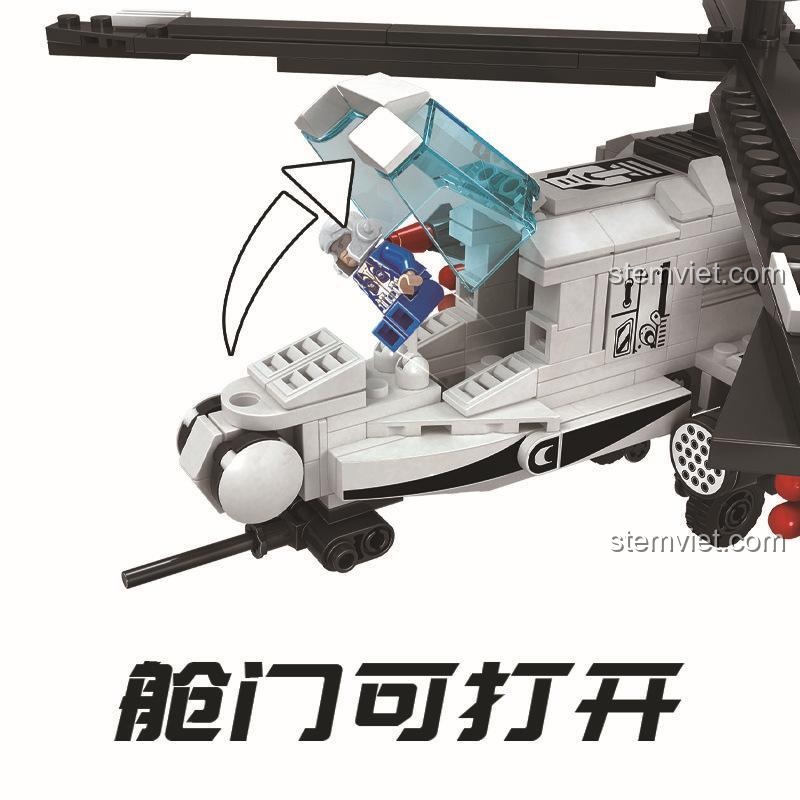 Bộ lắp ghép Trực thăng Apache Winner 8028 không chỉ là một mô hình tĩnh. Bé có thể xoay cánh quạt, mở buồng lái để đưa phi công vào vị trí, hoặc trang bị tên lửa, pháo để sẵn sàng cho nhiệm vụ. Những tính năng này giúp bé phát huy tối đa trí tưởng tượng, tạo ra những kịch bản chiến đấu, phiêu lưu đầy kịch tính.