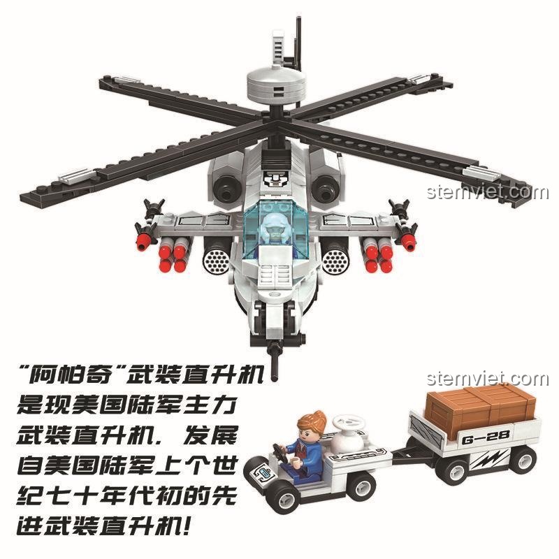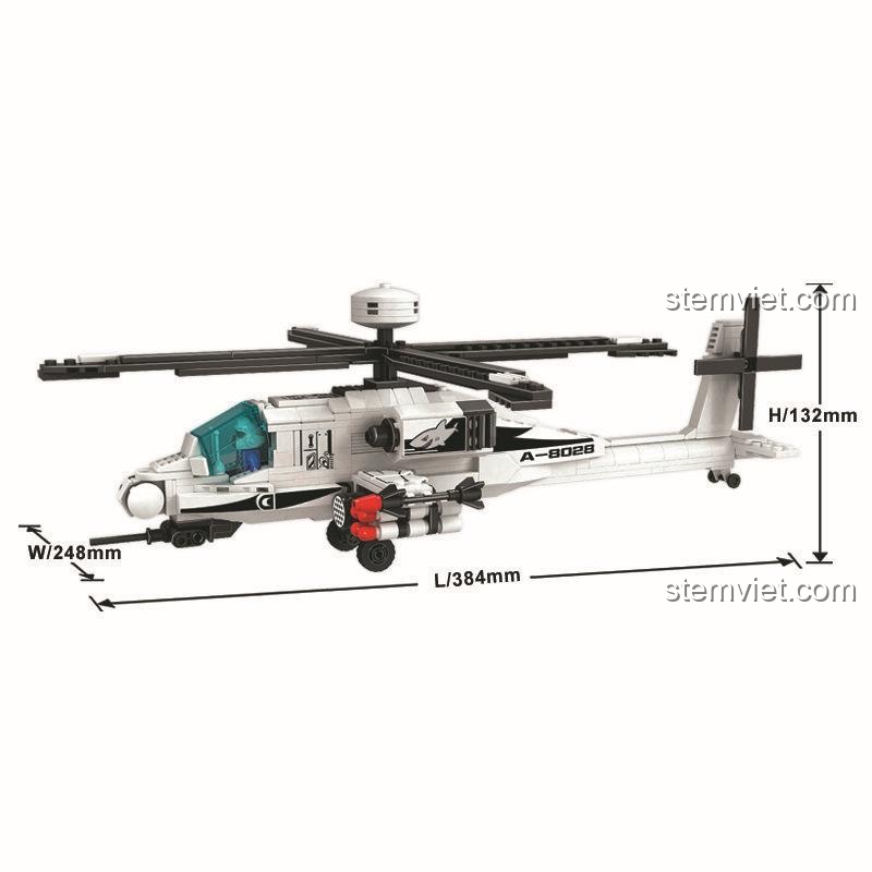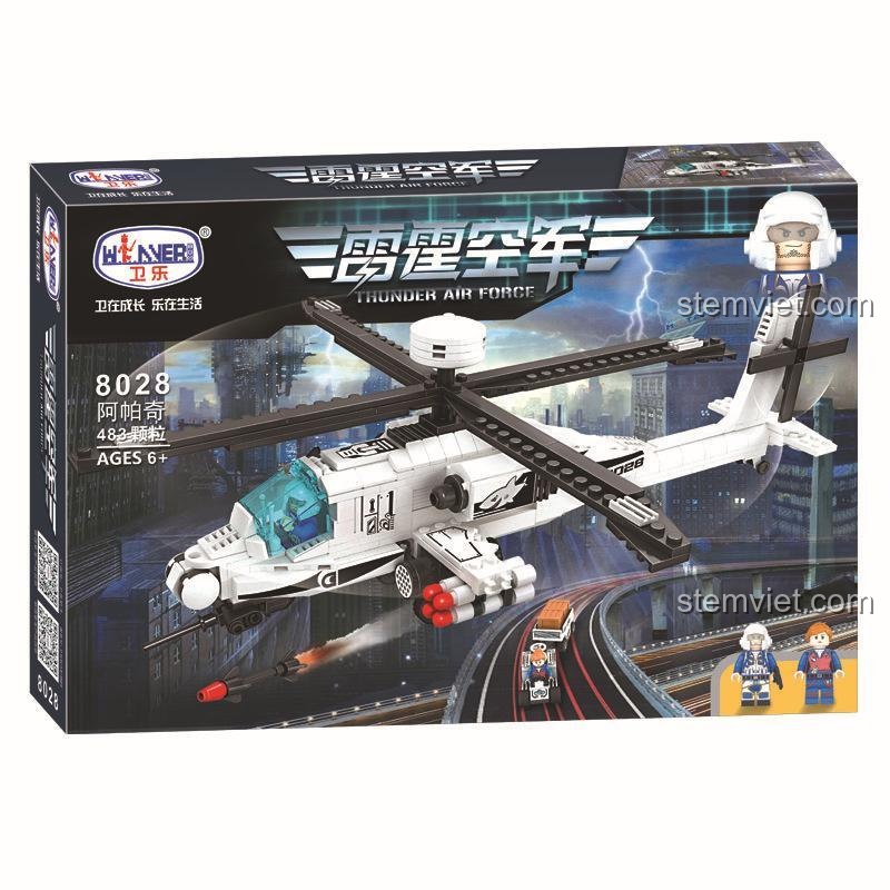 Chào mừng bố mẹ và các bé đến với thế giới mô hình quân sự đầy hấp dẫn! Bộ lắp ghép Trực thăng Apache Winner 8028 (mã 8028) là món quà tuyệt vời dành cho các bé trai từ 6 tuổi trở lên, đặc biệt là những ai yêu thích các loại máy bay chiến đấu và xe quân sự.
