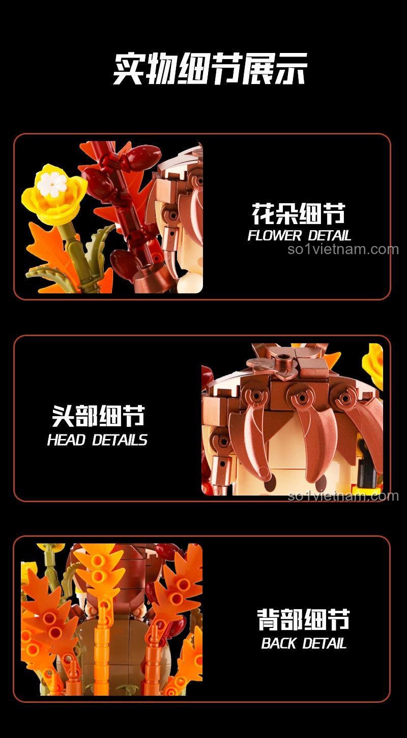 Sản phẩm nổi bật với thiết kế độc đáo, các chi tiết hoa lá sinh động và màu sắc tươi sáng, mang đến trải nghiệm lắp ráp thú vị và mô hình hoàn thiện đẹp mắt.