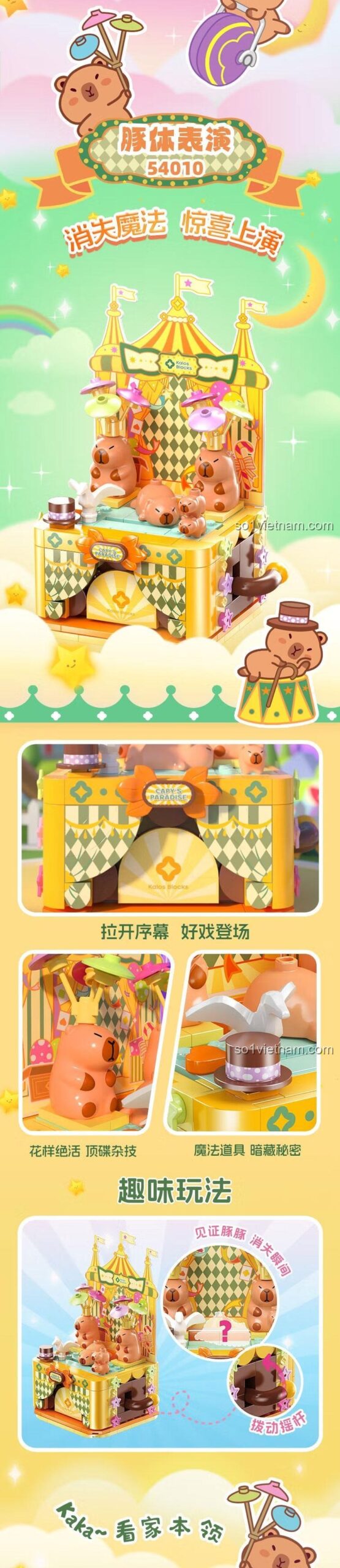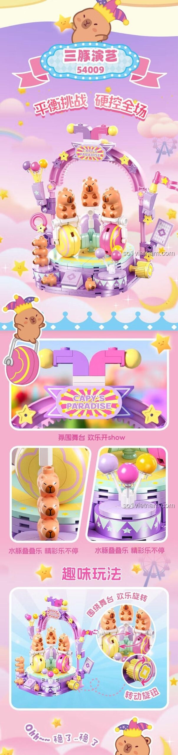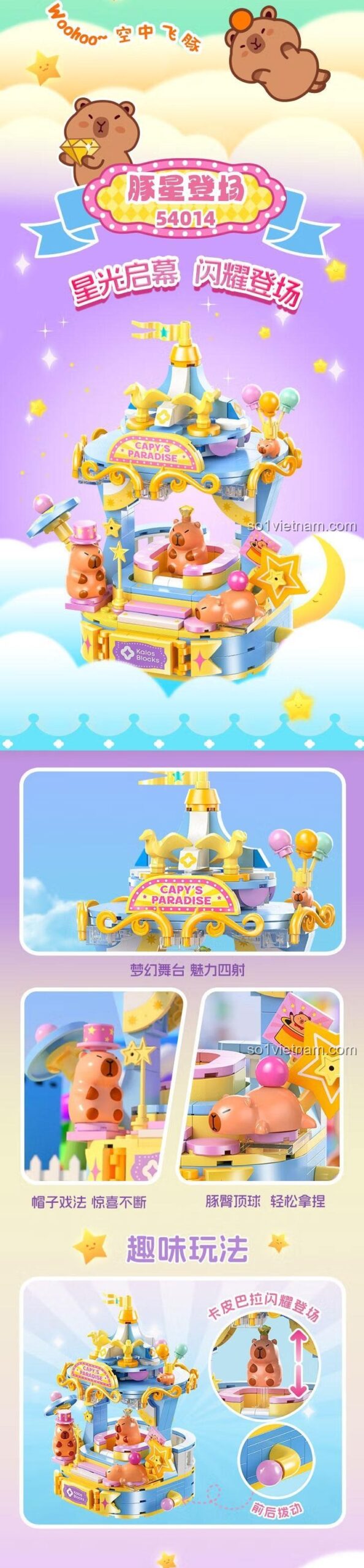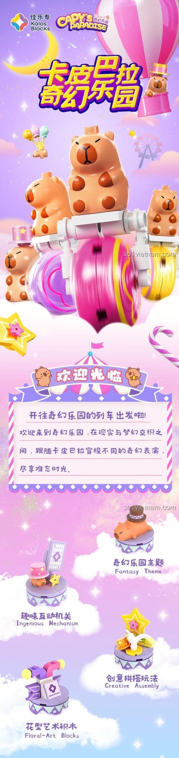 Capybara, loài gặm nhấm lớn nhất thế giới, nổi tiếng với tính cách hiền lành, thân thiện và khả năng hòa đồng với mọi loài. Hình ảnh Capybara thường gắn liền với sự thư giãn, vui vẻ và một cuộc sống “chill”. Bộ lắp ghép Vòng Quay Cầu Trượt Của Capy Kalos Blocks 54012 lấy cảm hứng từ chính tinh thần này, tái hiện một công viên giải trí thu nhỏ đầy màu sắc, nơi những chú Capybara đáng yêu đang tận hưởng niềm vui. Mỗi mảnh ghép được thiết kế tỉ mỉ, mang đến một câu chuyện về sự sẻ chia, niềm vui và những khoảnh khắc đáng nhớ. Sản phẩm này không chỉ là đồ chơi mà còn là phương tiện để bé khám phá thế giới xung quanh, nuôi dưỡng sự đồng cảm và thấu hiểu.