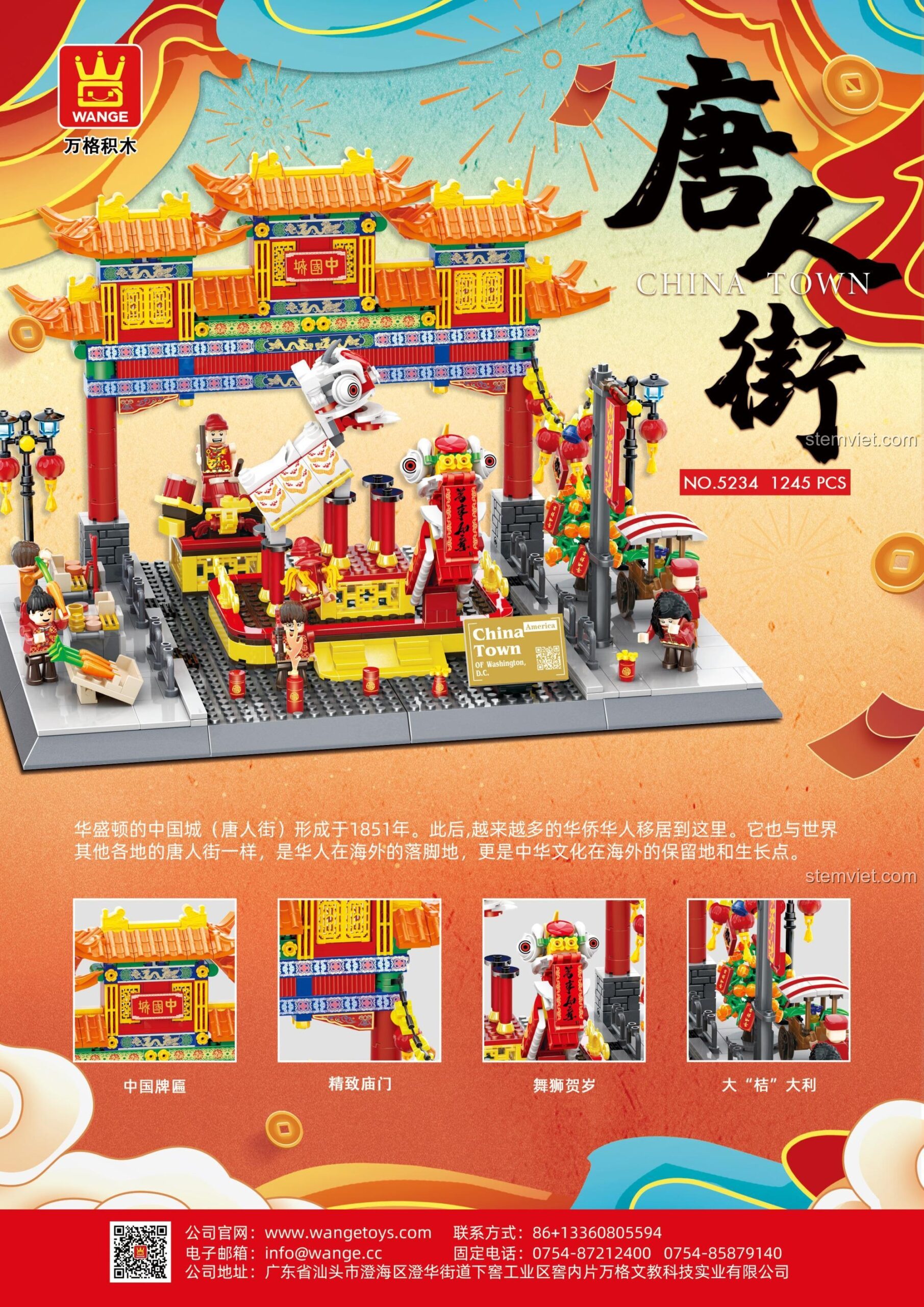 Bộ lắp ghép WANGE 5234 Khu Phố Tàu Chinatown (1245 mảnh ghép) – Kiến Trúc Tinh Xảo và Chủ Đề Văn Hóa Độc Đáo