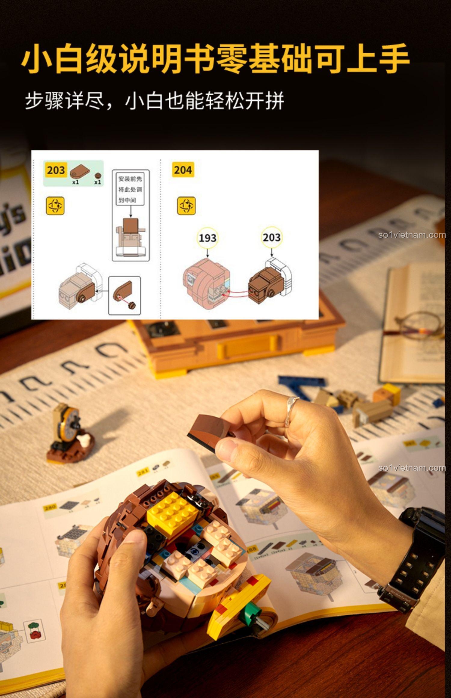 Sản phẩm Pinocchio 6186 Wekki đi kèm sách hướng dẫn chi tiết, rõ ràng, được thiết kế dành cho người mới bắt đầu. Các bước lắp ráp được minh họa cụ thể, giúp bé trai 8 tuổi dễ dàng làm quen và hoàn thành mô hình mà không gặp quá nhiều khó khăn.