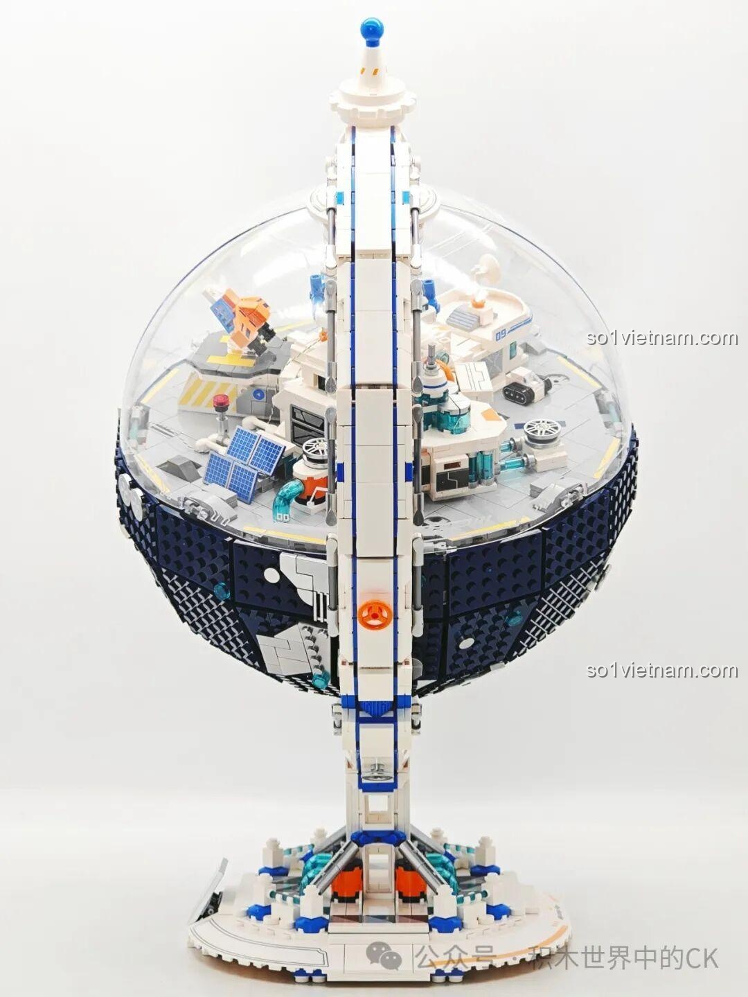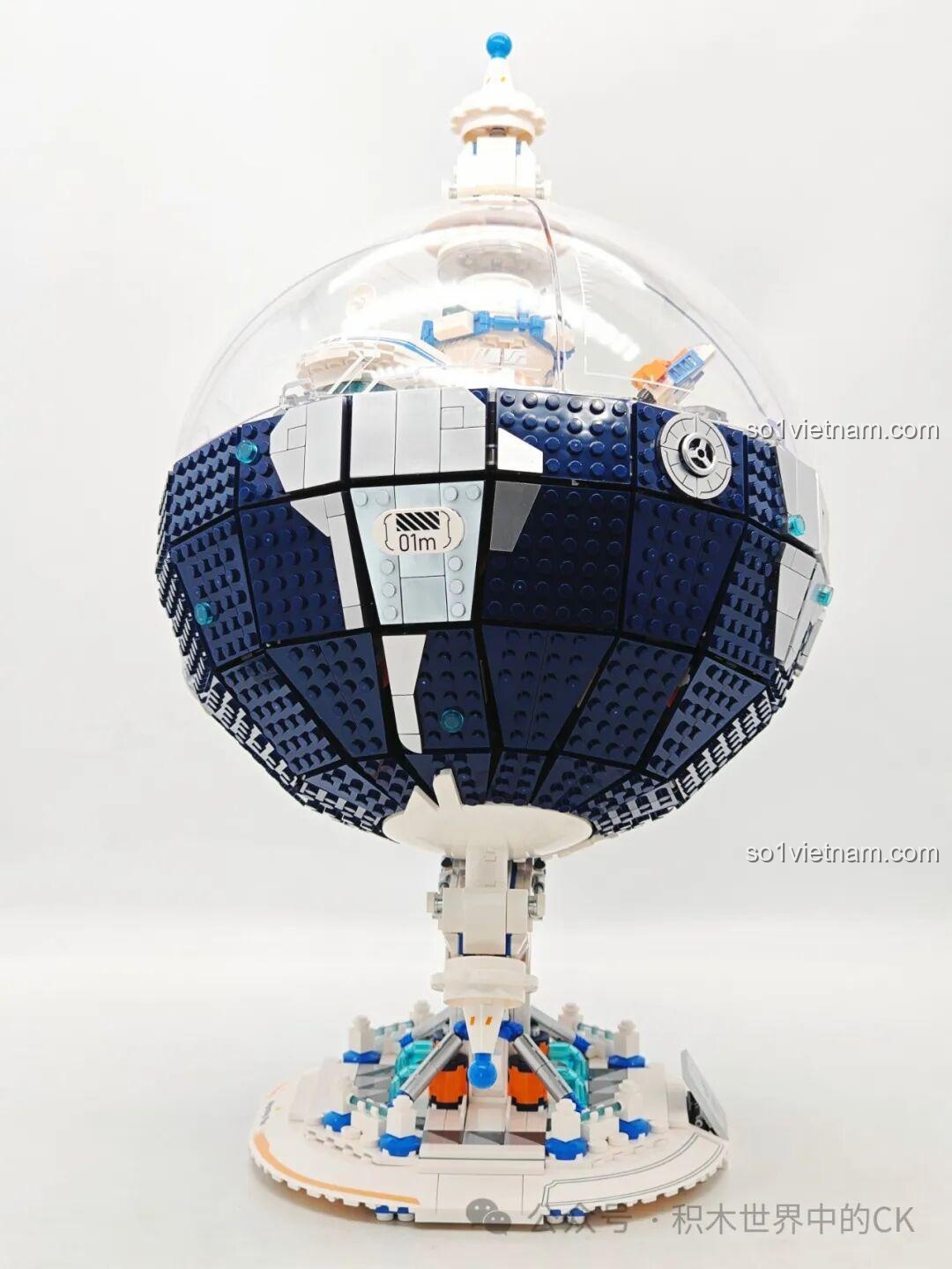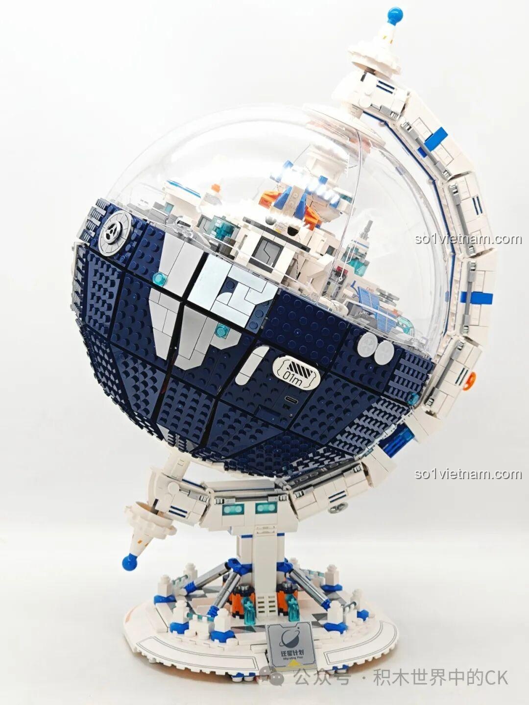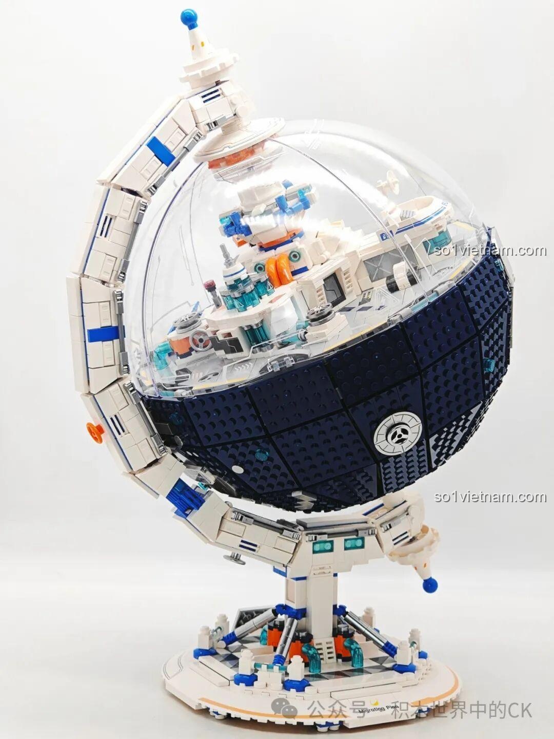 Điểm đặc biệt của bộ đồ chơi mô hình này là thiết kế bán trong suốt, cho phép bạn chiêm ngưỡng cấu trúc phức tạp và các khu vực chức năng bên trong quả cầu, bao gồm tháp điều khiển trung tâm, khu vực vận hành, khu vực sinh sống cơ bản và thậm chí là một mặt trời nhân tạo. Từng chi tiết nhỏ như tấm pin mặt trời, ăng-ten, và các module nghiên cứu đều được tái hiện tỉ mỉ, mang đến cảm giác chân thực như một trạm không gian thực thụ. Vỏ bảo vệ khắc laser không chỉ tăng thêm vẻ đẹp mà còn bảo vệ các chi tiết bên trong, thể hiện sự chăm chút đến từng mảnh ghép.