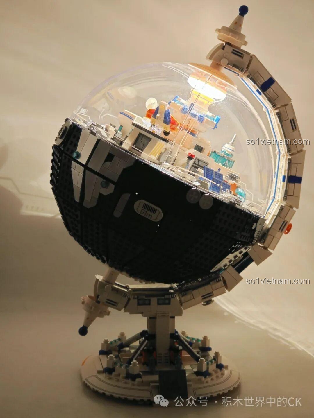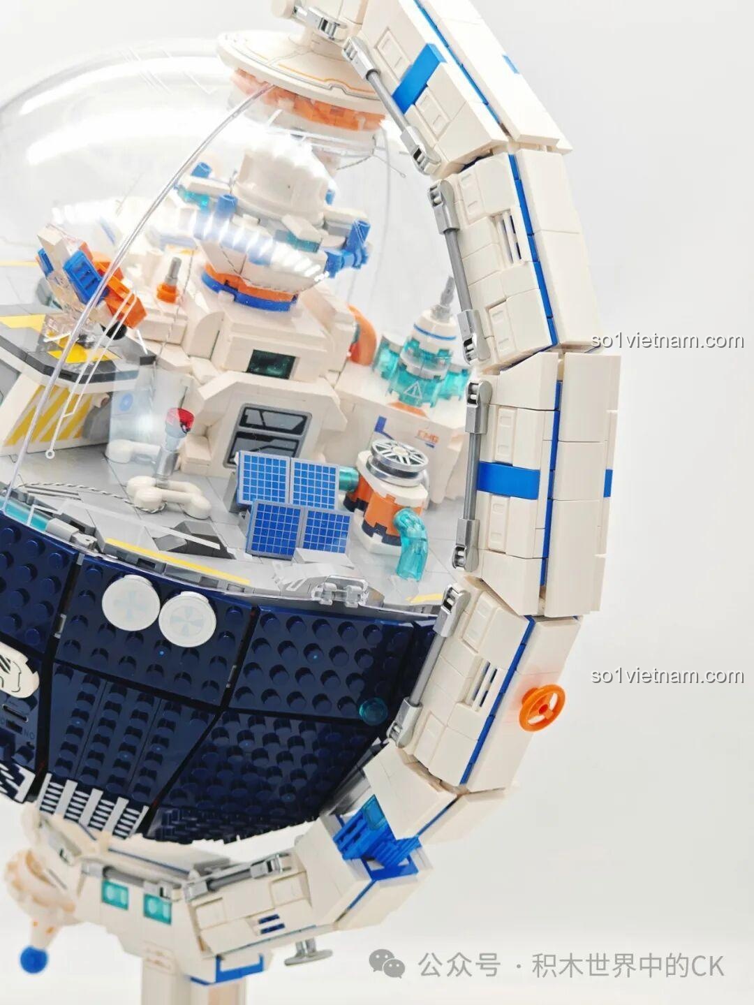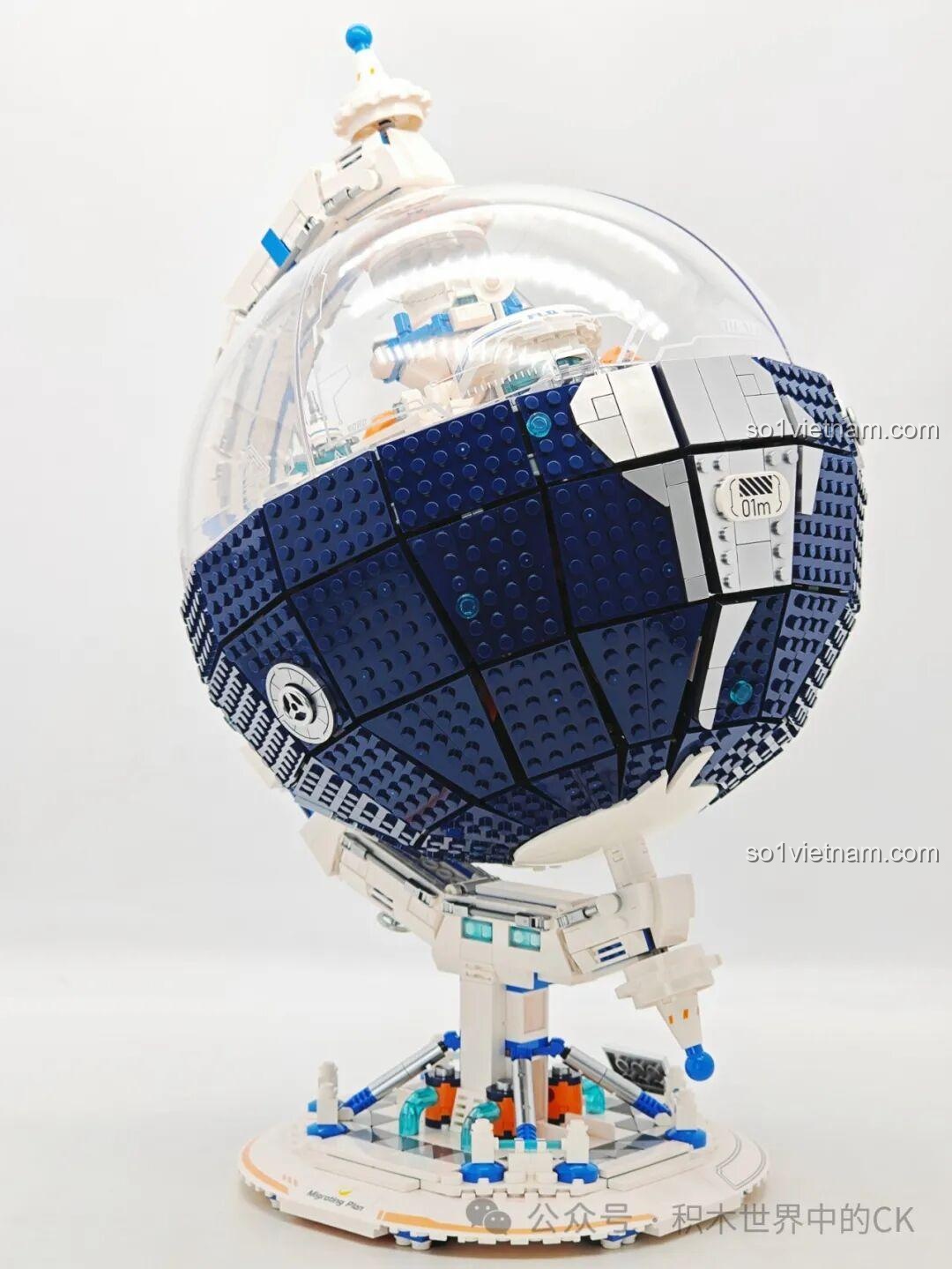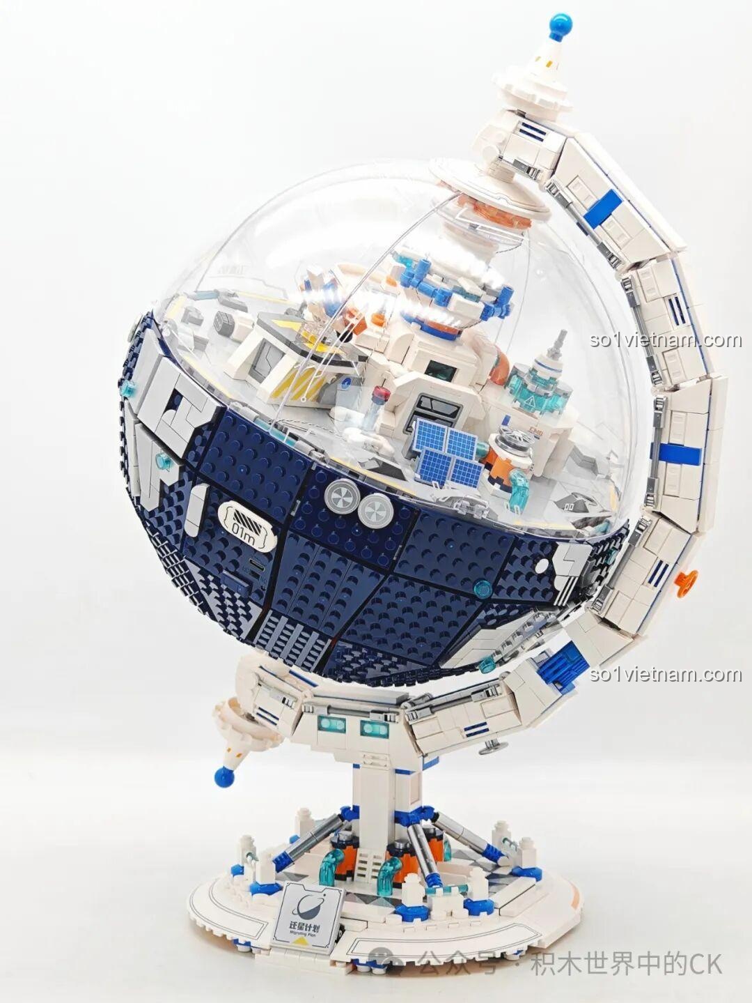 Điểm đặc biệt của bộ đồ chơi mô hình này là thiết kế bán trong suốt, cho phép bạn chiêm ngưỡng cấu trúc phức tạp và các khu vực chức năng bên trong quả cầu, bao gồm tháp điều khiển trung tâm, khu vực vận hành, khu vực sinh sống cơ bản và thậm chí là một mặt trời nhân tạo. Từng chi tiết nhỏ như tấm pin mặt trời, ăng-ten, và các module nghiên cứu đều được tái hiện tỉ mỉ, mang đến cảm giác chân thực như một trạm không gian thực thụ. Vỏ bảo vệ khắc laser không chỉ tăng thêm vẻ đẹp mà còn bảo vệ các chi tiết bên trong, thể hiện sự chăm chút đến từng mảnh ghép.