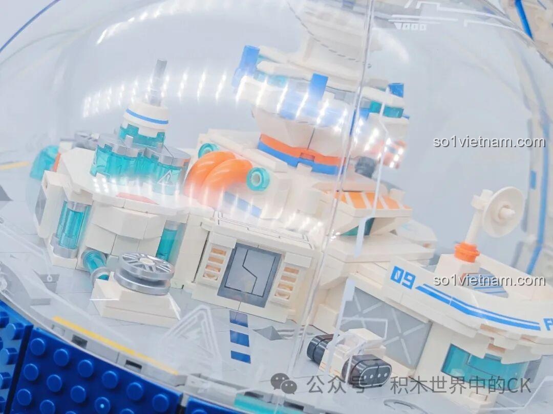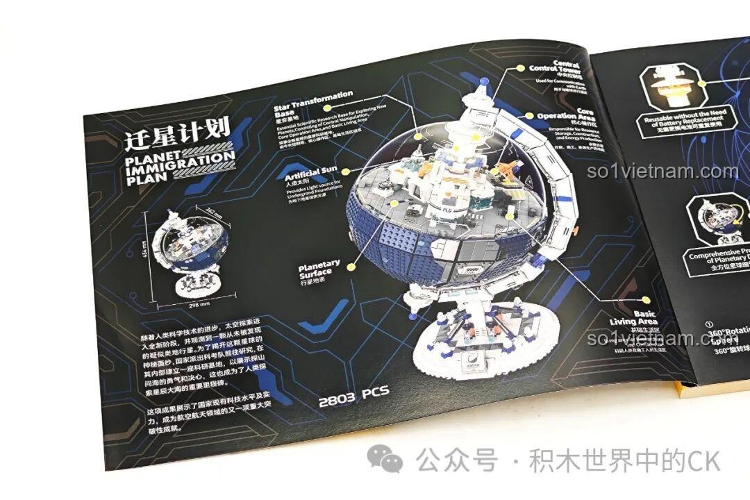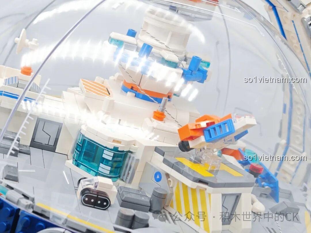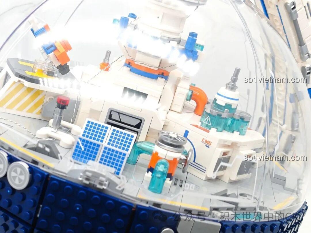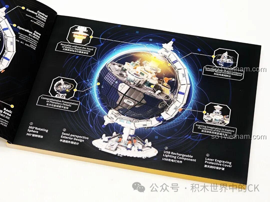 Điểm đặc biệt của bộ đồ chơi mô hình này là thiết kế bán trong suốt, cho phép bạn chiêm ngưỡng cấu trúc phức tạp và các khu vực chức năng bên trong quả cầu, bao gồm tháp điều khiển trung tâm, khu vực vận hành, khu vực sinh sống cơ bản và thậm chí là một mặt trời nhân tạo. Từng chi tiết nhỏ như tấm pin mặt trời, ăng-ten, và các module nghiên cứu đều được tái hiện tỉ mỉ, mang đến cảm giác chân thực như một trạm không gian thực thụ. Vỏ bảo vệ khắc laser không chỉ tăng thêm vẻ đẹp mà còn bảo vệ các chi tiết bên trong, thể hiện sự chăm chút đến từng mảnh ghép.