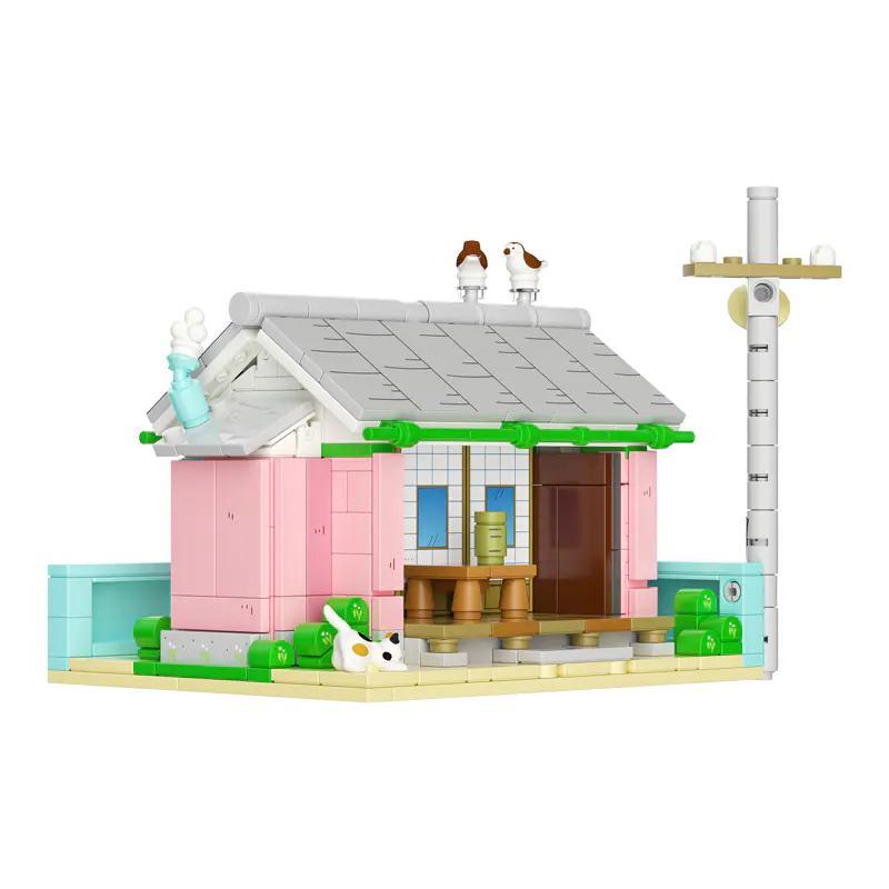 Bộ đồ chơi xây dựng Nhà Mini Sakura của Maruko Wekki ytxwzygg nổi bật với thiết kế vô cùng dễ thương và màu sắc tươi sáng, chủ đạo là hồng ngọt ngào, kết hợp hài hòa với mái nhà xám, nền xanh lá và các chi tiết trắng, nâu. Từng mảnh ghép được chăm chút tỉ mỉ, tái hiện chân thực ngôi nhà của Maruko-chan với cửa sổ, mái hiên, và cả ống khói nhỏ xinh. Dù là một mô hình thu nhỏ, nhưng độ chi tiết cao của sản phẩm sẽ khiến bé gái 8 tuổi thích thú khi khám phá từng góc nhỏ. Các chi tiết phụ như hai chú chim nhỏ trên mái và chú mèo con nằm bên hiên nhà càng làm tăng thêm vẻ sinh động và đáng yêu cho tổng thể mô hình. Đây chắc chắn sẽ là một điểm nhấn nổi bật trong bộ sưu tập đồ chơi của bé.