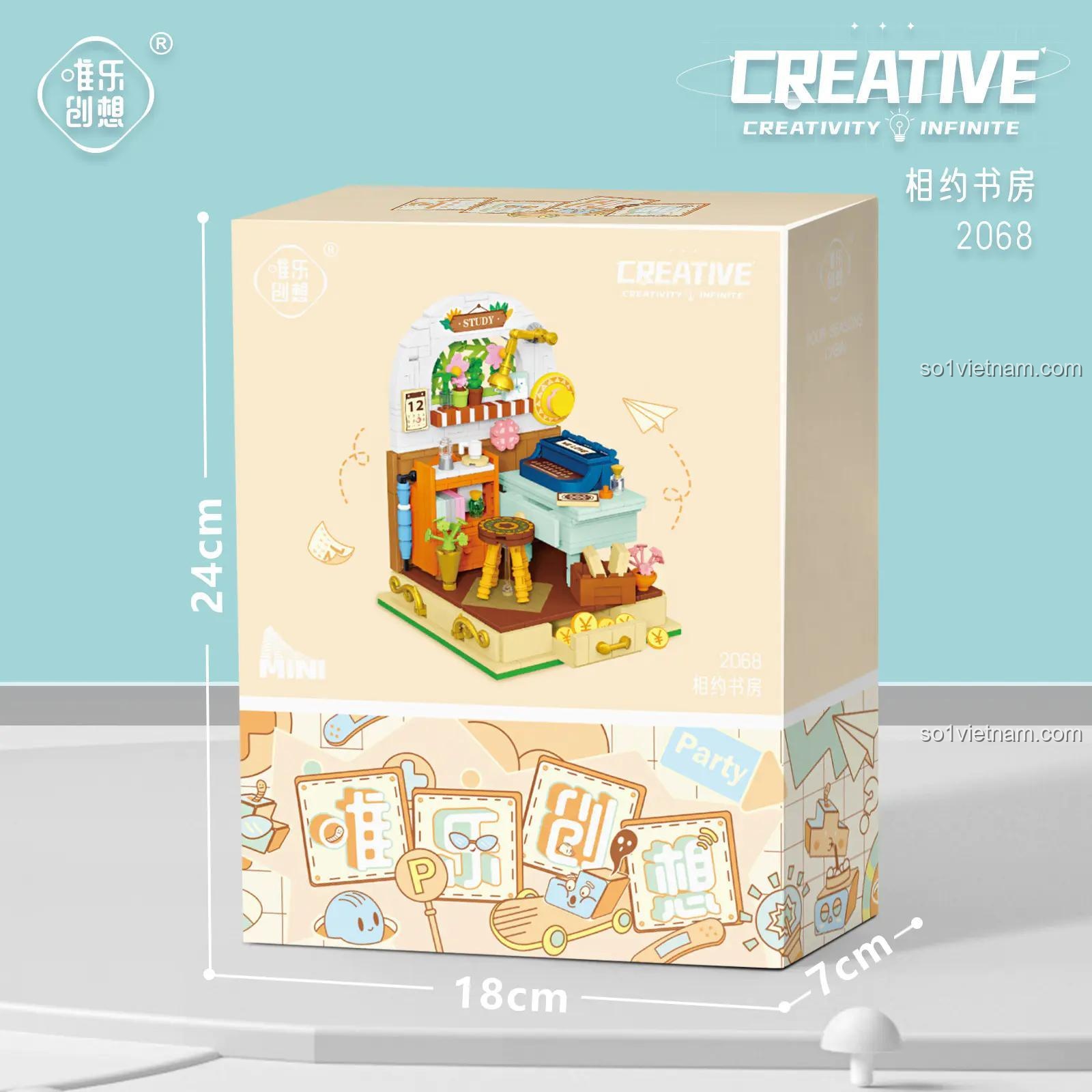 Trong lòng Thị Trấn Cổ Tích, có một thư phòng nhỏ bé nhưng chứa đựng cả một vũ trụ tri thức. Đó là nơi những câu chuyện được viết nên, những ước mơ được ấp ủ và những cuộc hẹn hò lãng mạn diễn ra giữa những trang sách. Bộ lắp ghép Wele Creative 2068 tái hiện lại không gian kỳ diệu này, nơi mỗi chi tiết đều gợi nhớ về một thế giới cổ tích đầy màu sắc. Từ chiếc đàn piano nhỏ xinh, giá sách đầy ắp tri thức đến những chậu cây xanh tươi, tất cả đều được thiết kế tỉ mỉ để kể lại câu chuyện về một góc học tập mơ ước. Đây là một đồ chơi mô hình góc học tập không chỉ giúp bé giải trí mà còn khơi gợi niềm yêu thích đọc sách và khám phá tri thức, đưa bé vào một cuộc hành trình đầy cảm hứng qua từng mảnh ghép.
