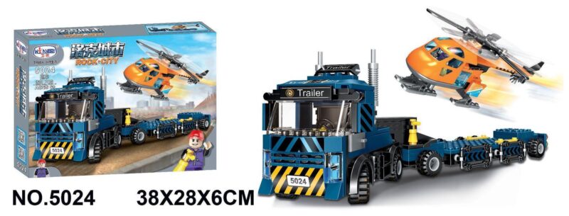 Bộ Lắp Ghép Wenbei JEMLOU 5024 Xe Tải Kéo Rơ Moóc và Trực Thăng Thành Phố Rock City (320 Mảnh Ghép) – Vận Chuyển Đa Năng và Giá Rẻ