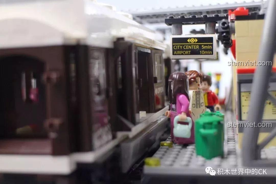 - Ga tàu nhộn nhịp: Bé có thể xây dựng một nhà ga nhỏ xung quanh tàu, với các minifigures đang chờ tàu, mua vé, hoặc chào đón người thân.