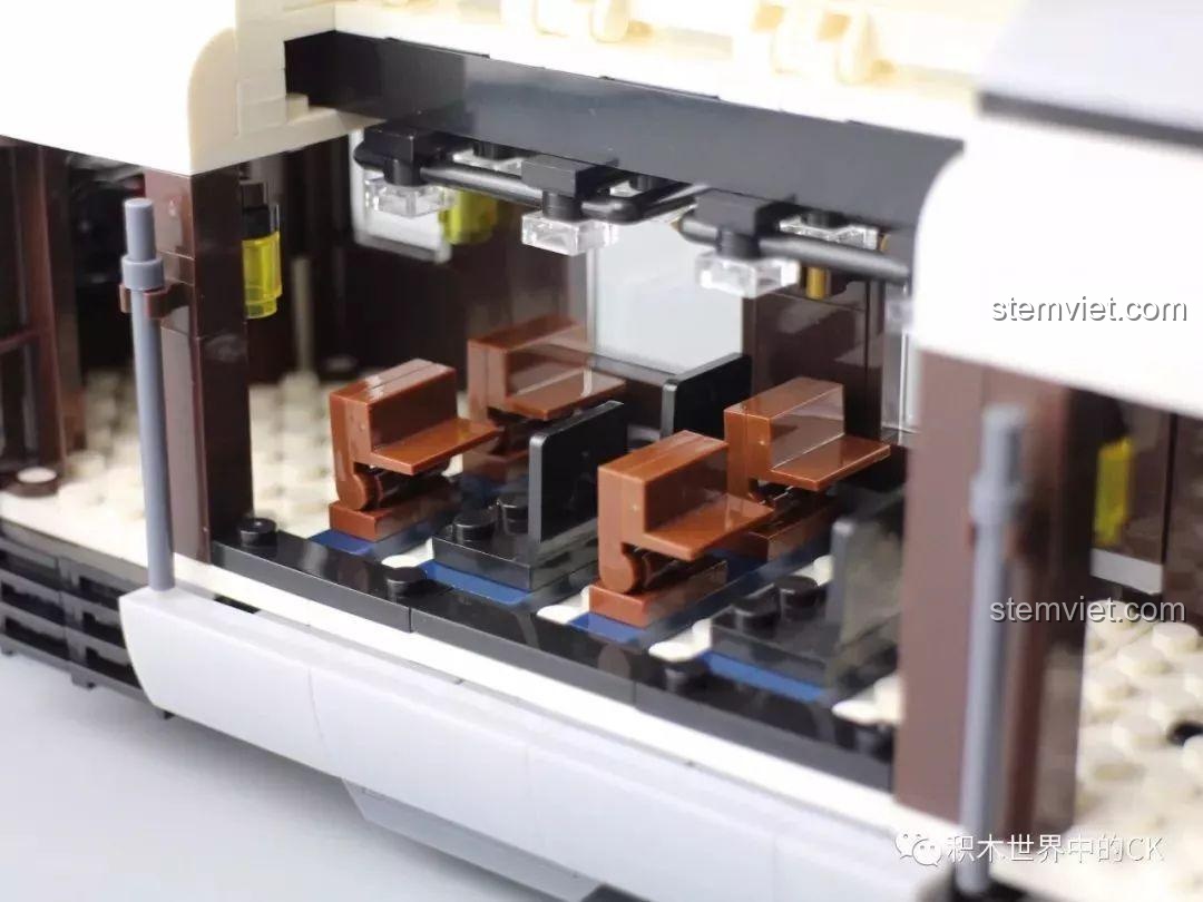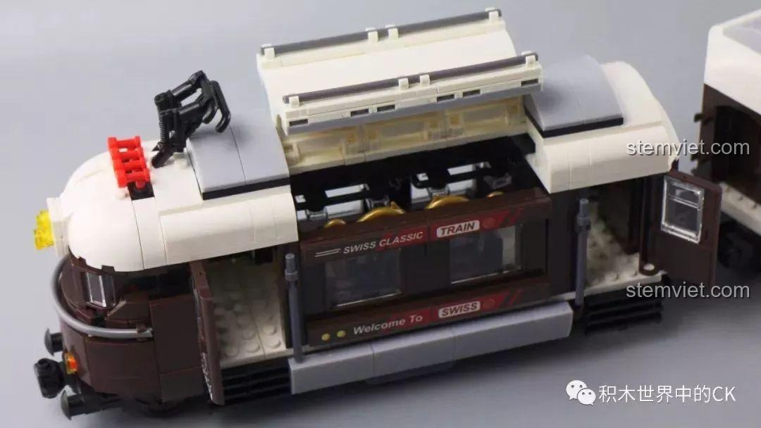 - Cửa và mái có thể mở: Các cánh cửa toa tàu và phần mái đều có thể mở ra, giúp bé dễ dàng tương tác với các minifigures và khám phá nội thất bên trong.