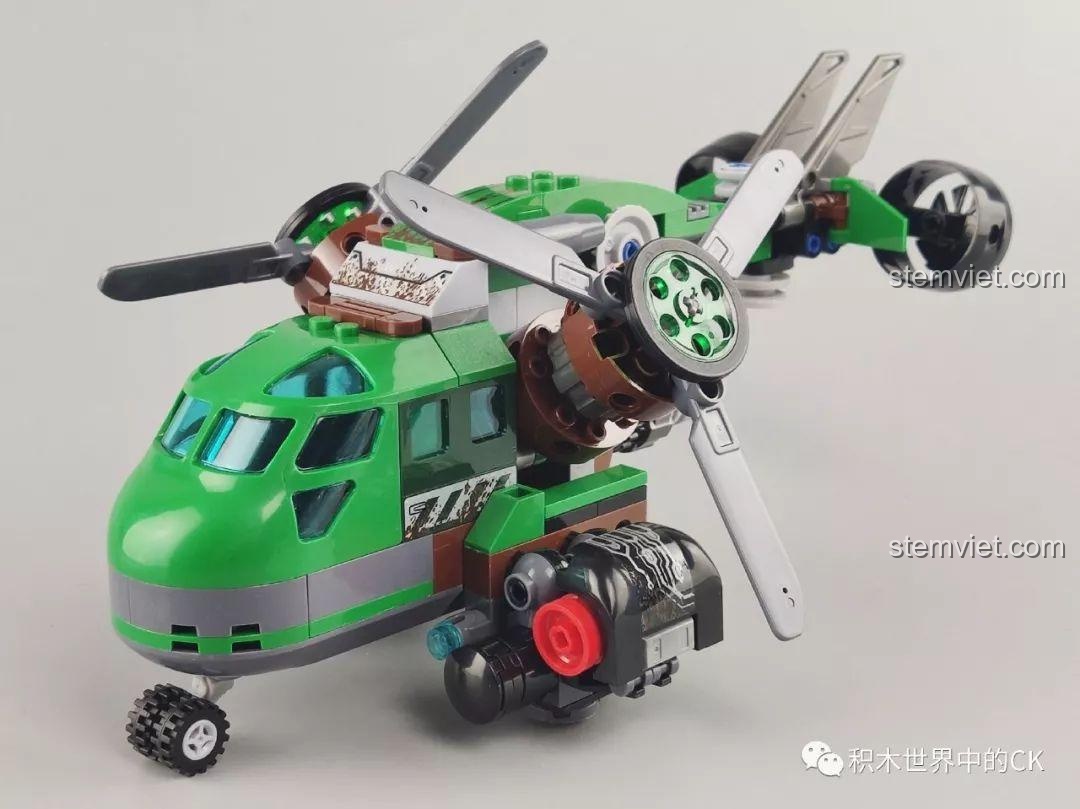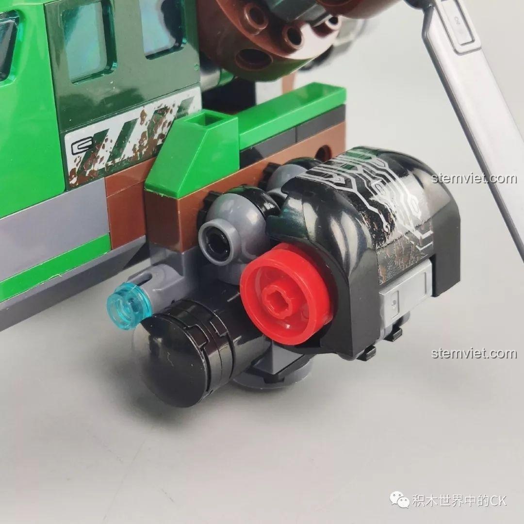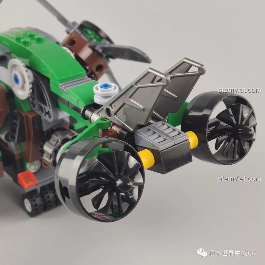 Bộ lắp ráp Winner 5101 Trực thăng Đại bàng Xanh không chỉ đẹp mắt mà còn sở hữu nhiều tính năng tương tác độc đáo, mang đến trải nghiệm chơi đầy hứng khởi cho bé trai 6 tuổi. Điểm nhấn nổi bật nhất chính là khả năng biến hình linh hoạt của chiếc trực thăng. Mũi máy bay có thể tháo rời, mở ra không gian buồng lái rộng rãi để đặt minifigure vào. Các cánh quạt không chỉ xoay 360 độ một cách mượt mà mà còn có thể gập xuống hoặc điều chỉnh linh hoạt, mô phỏng chân thực chuyển động của một chiếc trực thăng thực thụ. Hệ thống bánh xe linh hoạt giúp trực thăng di chuyển dễ dàng trên nhiều bề mặt. Đặc biệt, bộ đồ chơi còn tích hợp tính năng bắn đạn nhựa, cho phép bé tái hiện những pha hành động kịch tính, tăng thêm phần hấp dẫn cho mỗi cuộc chiến. Kèm theo là chiếc xe máy nhỏ gọn, có thể chở một minifigure, tạo ra những màn phối hợp tác chiến trên không và dưới đất đầy sáng tạo. Với những tính năng này, bộ đồ chơi mô hình Trực thăng quân sự Winner 5101 chắc chắn sẽ là nguồn cảm hứng bất tận cho những giờ chơi đầy phiêu lưu và khám phá.