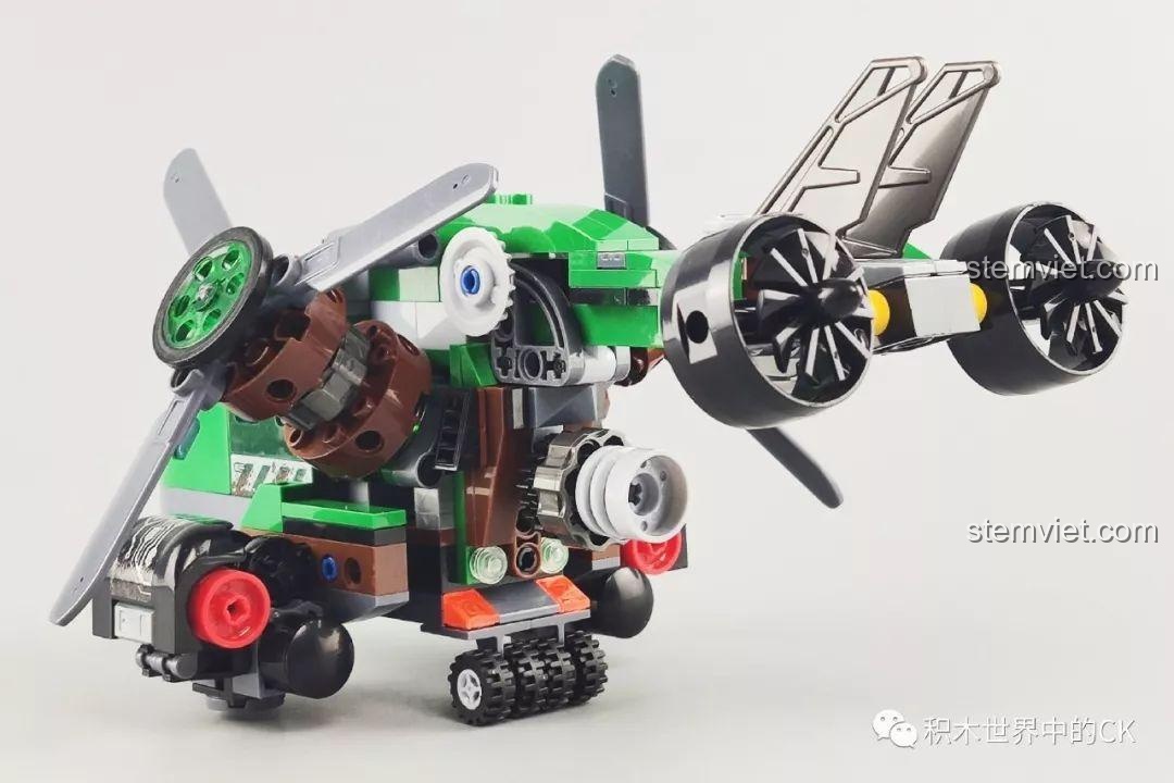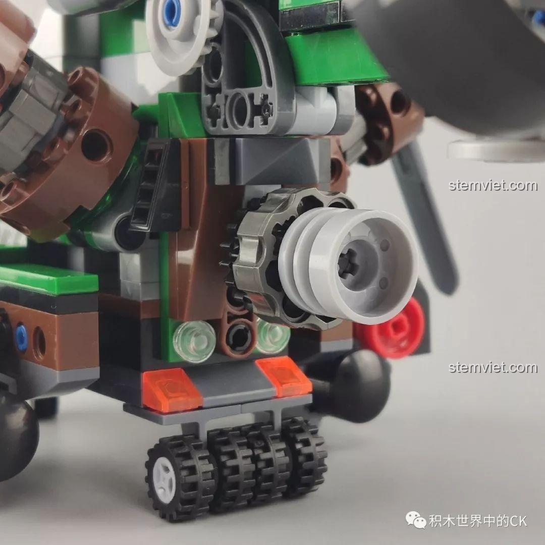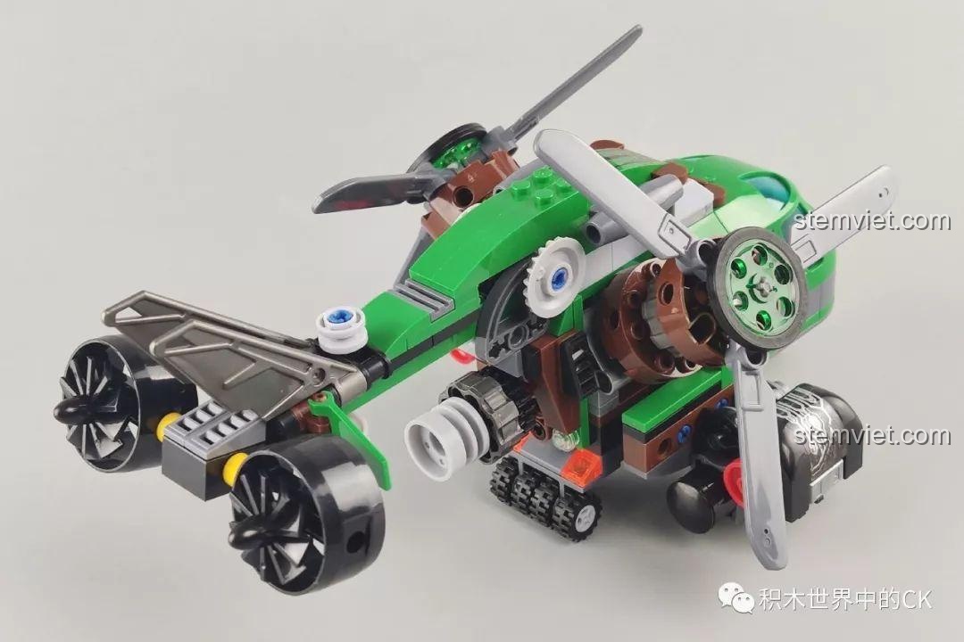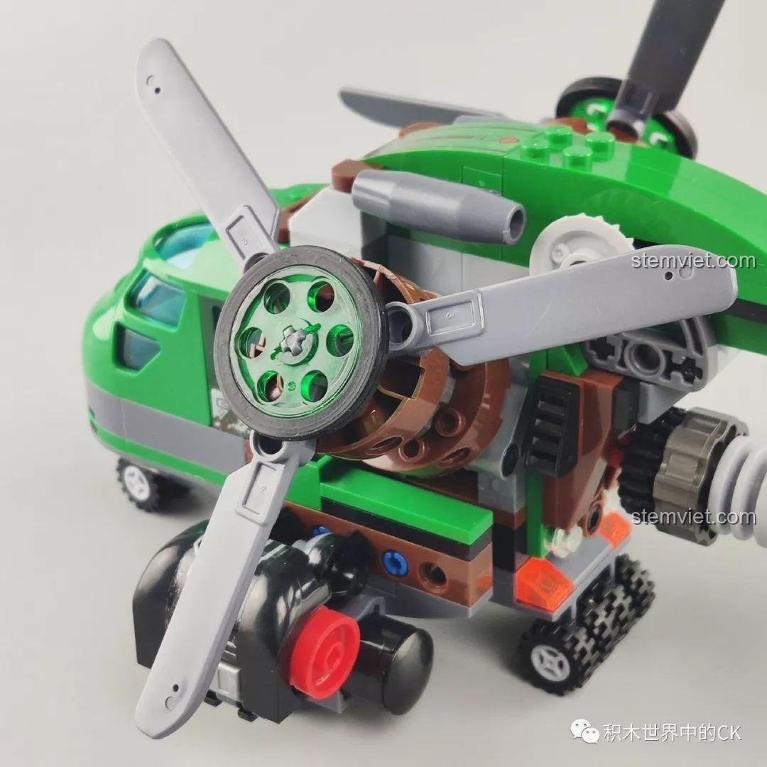 Bộ lắp ráp Winner 5101 Trực thăng Đại bàng Xanh không chỉ đẹp mắt mà còn sở hữu nhiều tính năng tương tác độc đáo, mang đến trải nghiệm chơi đầy hứng khởi cho bé trai 6 tuổi. Điểm nhấn nổi bật nhất chính là khả năng biến hình linh hoạt của chiếc trực thăng. Mũi máy bay có thể tháo rời, mở ra không gian buồng lái rộng rãi để đặt minifigure vào. Các cánh quạt không chỉ xoay 360 độ một cách mượt mà mà còn có thể gập xuống hoặc điều chỉnh linh hoạt, mô phỏng chân thực chuyển động của một chiếc trực thăng thực thụ. Hệ thống bánh xe linh hoạt giúp trực thăng di chuyển dễ dàng trên nhiều bề mặt. Đặc biệt, bộ đồ chơi còn tích hợp tính năng bắn đạn nhựa, cho phép bé tái hiện những pha hành động kịch tính, tăng thêm phần hấp dẫn cho mỗi cuộc chiến. Kèm theo là chiếc xe máy nhỏ gọn, có thể chở một minifigure, tạo ra những màn phối hợp tác chiến trên không và dưới đất đầy sáng tạo. Với những tính năng này, bộ đồ chơi mô hình Trực thăng quân sự Winner 5101 chắc chắn sẽ là nguồn cảm hứng bất tận cho những giờ chơi đầy phiêu lưu và khám phá.