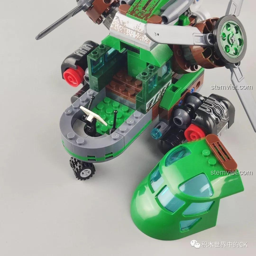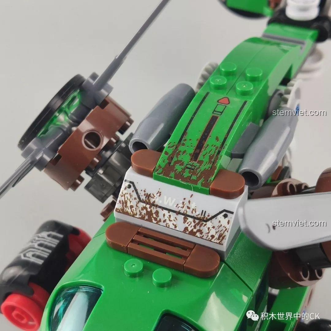 Bộ đồ chơi Winner 5101 Trực thăng Đại bàng Xanh nổi bật với khả năng biến hình, mũi máy bay có thể tháo rời, cánh quạt xoay 360 độ linh hoạt và có thể gập xuống. Ngoài ra, còn có tính năng bắn đạn nhựa và đi kèm xe máy cùng 2 minifigure, mang lại trải nghiệm chơi Hành Động Mãnh Liệt và đa dạng.