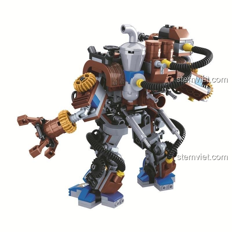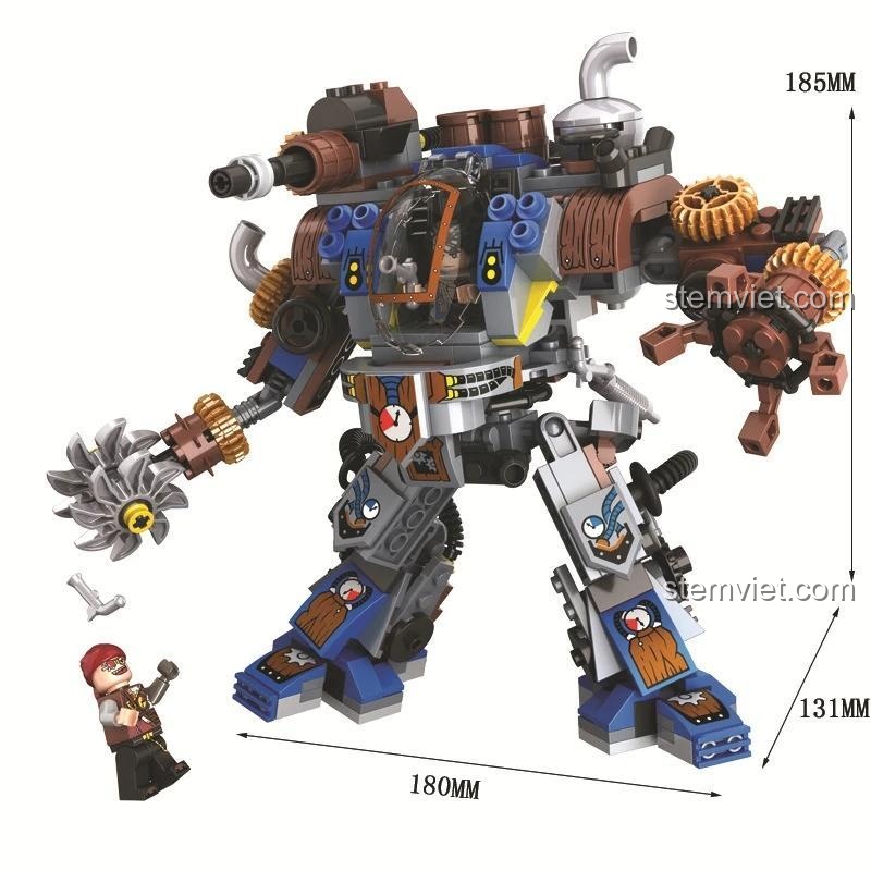 Mech hơi nước 8045 nổi bật với thiết kế Steampunk độc đáo, buồng lái mở được, và các khớp cử động linh hoạt cho phép tạo nhiều tư thế. Đặc biệt, robot được trang bị cánh tay kẹp và cánh tay cưa, mang lại khả năng tương tác và sáng tạo không giới hạn trong các kịch bản chơi.