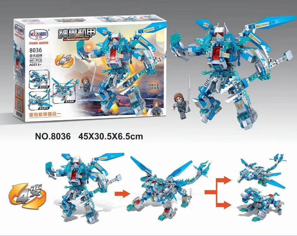 Bộ lắp ghép Winner JEMLOU 8036 Thần Thú Cơ Giáp: Thôn Thiên Chiến Thần (401 mảnh ghép) – Thần Thú Biến Hình và Biến Hình 4 Kiểu