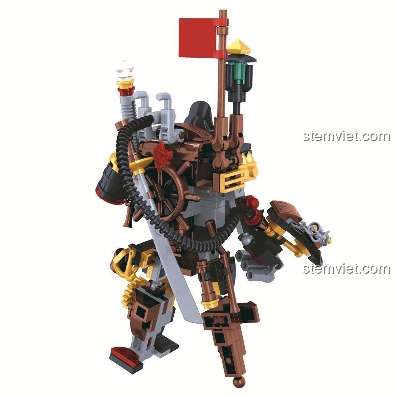 Chào mừng các mẹ có con trai 6 tuổi đến với thế giới đầy mê hoặc của bộ đồ chơi Chiến Binh Hơi Nước Winner JEMLOU 8040! Đây không chỉ là một bộ lắp ghép thông thường, mà là cánh cửa mở ra một kỷ nguyên hoàn toàn mới: Thời đại Steampunk. Hãy tưởng tượng một thế giới nơi công nghệ hơi nước và phong cách Victoria cổ điển hòa quyện, tạo nên những cỗ máy kỳ diệu và những chiến binh dũng mãnh. Bộ lắp ghép Robot Hơi Nước 8040 này chính là hiện thân của một huyền thoại hải tặc máy móc, một chiến binh được trang bị giáp máy và vũ khí độc đáo, sẵn sàng cho những cuộc phiêu lưu bất tận trên biển cả và những vùng đất xa xôi.