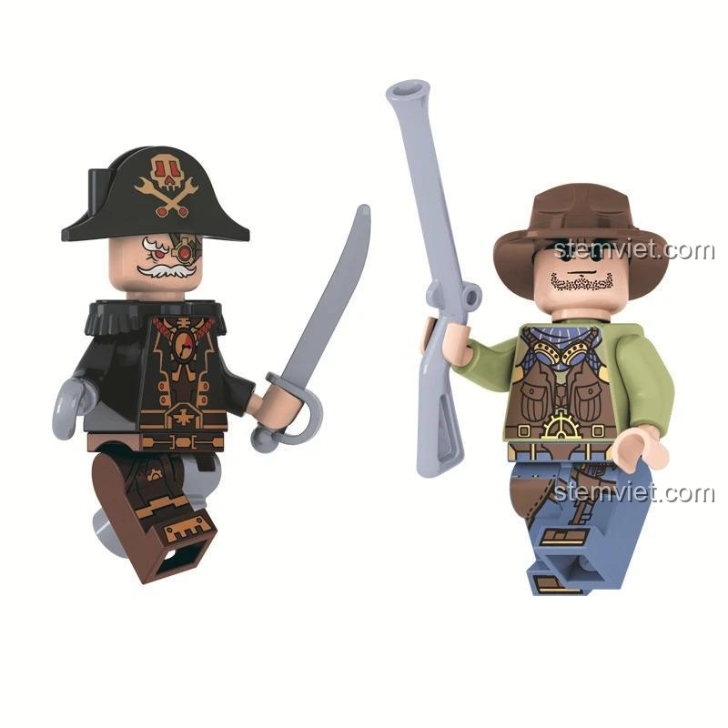 Điểm nhấn đặc biệt của bộ lắp ghép Robot Hơi Nước 8040 chính là thiết kế bất đối xứng độc đáo. Một bên tay là móc sắc bén, gợi nhớ hình ảnh của những thuyền trưởng hải tặc huyền thoại, trong khi chân phải lại được thiết kế khập khiễng một cách có chủ đích, tăng thêm vẻ phong trần và cá tính cho chiến binh. Chiếc kiếm lớn và khẩu súng trường đi kèm không chỉ là phụ kiện mà còn là vũ khí lợi hại, giúp bé trai của bạn thỏa sức sáng tạo những kịch bản chiến đấu gay cấn. Minifigure thuyền trưởng hải tặc với bộ râu quai nón và chiếc mũ đặc trưng càng làm tăng thêm sự hấp dẫn cho mô hình, đưa bé vào thế giới phiêu lưu đầy kịch tính.