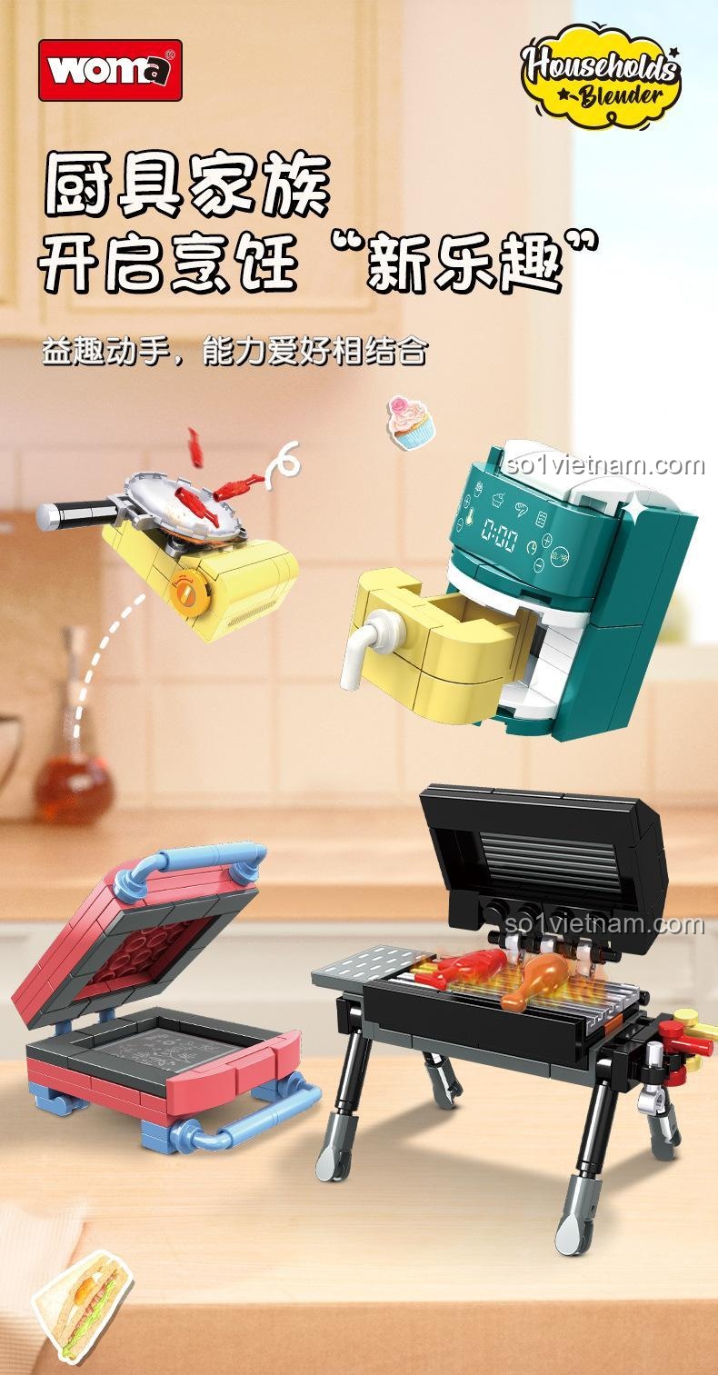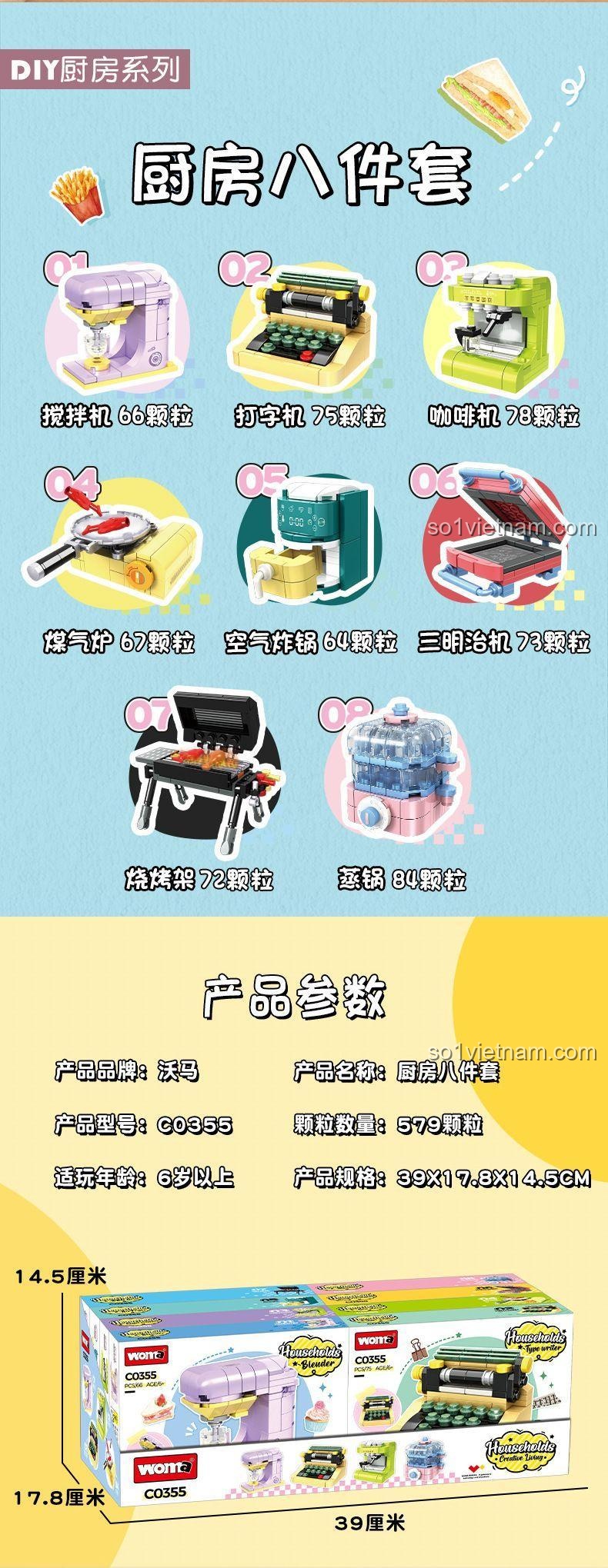 Bộ lắp ghép WOMA C0355 Bộ 8 Mô Hình Thiết Bị Nhà Bếp Mini (579 mảnh ghép) – Góc Bếp Ước Mơ và Lắp Được 8 Kiểu