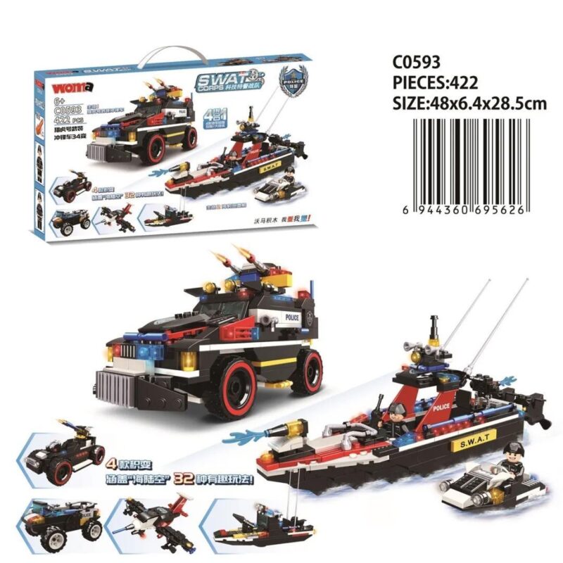 Bạn có bao giờ tự hỏi, những chiếc xe và thuyền tuần tra của lực lượng đặc nhiệm được thiết kế như thế nào để đối phó với mọi tình huống? Với bộ lắp ghép WOMA C0593, bé trai nhà bạn sẽ được dấn thân vào thế giới đầy kịch tính của đội đặc nhiệm, nơi mỗi chi tiết đều mang ý nghĩa chiến thuật. Bộ đồ chơi đặc nhiệm biến hình này không chỉ là một món đồ chơi giải trí mà còn là cánh cửa mở ra những câu chuyện về sự dũng cảm, tinh thần đồng đội và khả năng ứng biến linh hoạt trong mọi nhiệm vụ. Hãy cùng bé khám phá lịch sử và vai trò của những phương tiện chiến đấu hiện đại, từ xe xung phong bọc thép mạnh mẽ đến thuyền tuần tra cảnh sát tốc độ, và cùng nhau tạo nên những cuộc phiêu lưu không giới hạn!