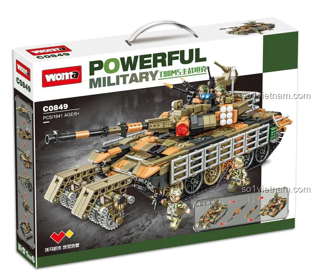 Bộ lắp ghép WOMA C0849 Xe Tăng Chủ Lực T90MS (1641 chi tiết) – Sức Mạnh Quân Sự và Lắp Được 2 Kiểu, Có Đèn LED