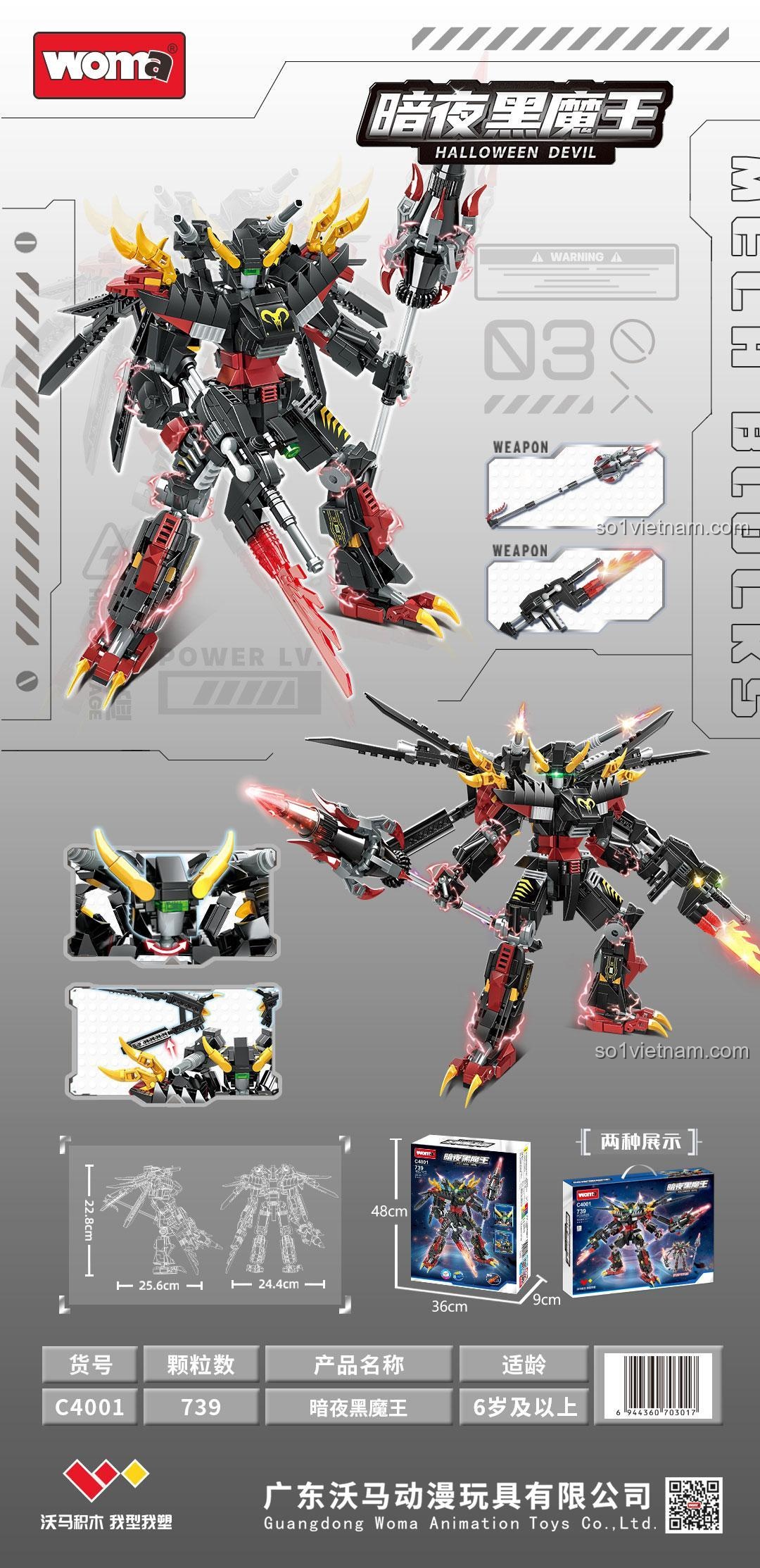 Hãy nhanh tay đặt mua ngay hôm nay để bé yêu của bạn được trải nghiệm niềm vui lắp ráp và khám phá thế giới robot đầy kỳ thú cùng bộ lắp ghép Robot Ma Vương Bóng Đêm WOMA C4001!