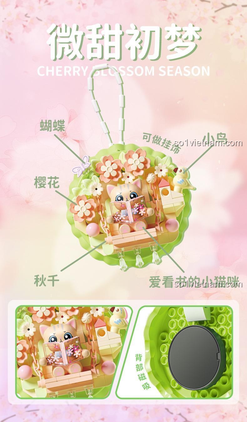 Thiết kế của đồ chơi mô hình Wonder Moon này tập trung vào các chi tiết nhỏ nhưng đầy ý nghĩa: chú mèo con đang đọc sách trên xích đu, những bông hoa anh đào nở rộ, một chú chim nhỏ đậu trên cành và cả những cánh bướm bay lượn. Mỗi mảnh ghép đều góp phần tạo nên một bức tranh sống động, khơi gợi cảm xúc và trí tưởng tượng. Đây không chỉ là một đồ chơi trang trí 802803 mà còn là một tác phẩm nghệ thuật mini, thể hiện sự khéo léo và gu thẩm mỹ của người sở hữu. Con gái 14 tuổi chắc chắn sẽ yêu thích vẻ đẹp dịu dàng và sự tỉ mỉ trong từng chi tiết của mô hình này.