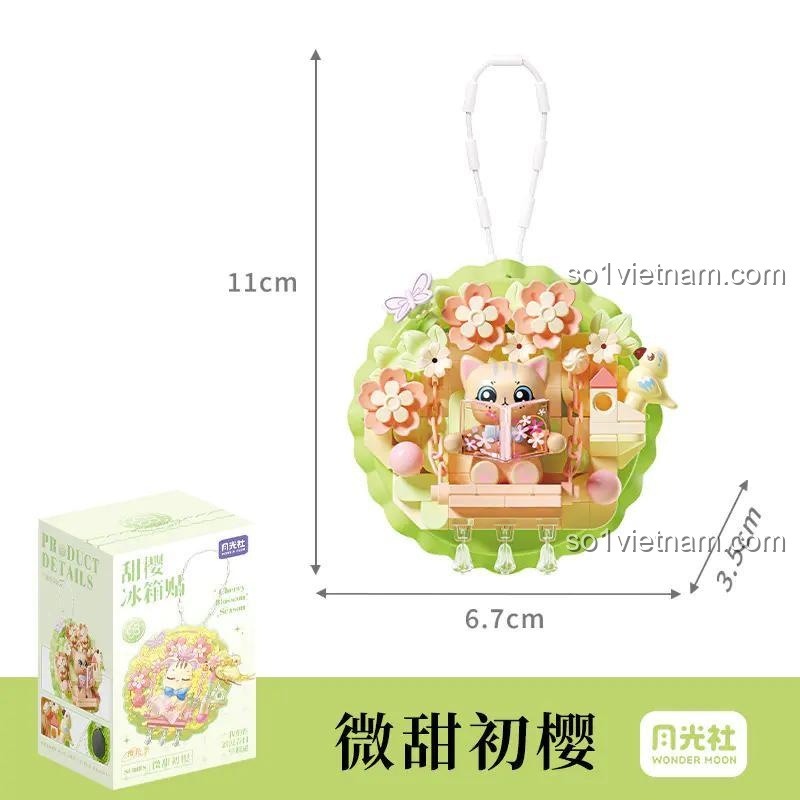 Bộ lắp ghép Mô hình nam châm tủ lạnh mèo hoa anh đào Wonder Moon là một kiệt tác của sự tinh tế và đáng yêu. Với kích thước nhỏ gọn 6.7 x 3.5 x 11 cm, mô hình này dễ dàng trở thành điểm nhấn nổi bật trong bất kỳ không gian nào. Màu sắc chủ đạo là sự kết hợp hài hòa giữa Hồng dịu dàng của hoa anh đào, Xanh lá tươi mát của lá cây, Trắng tinh khôi và Kem ấm áp, tạo nên một tổng thể vô cùng bắt mắt và dễ chịu.