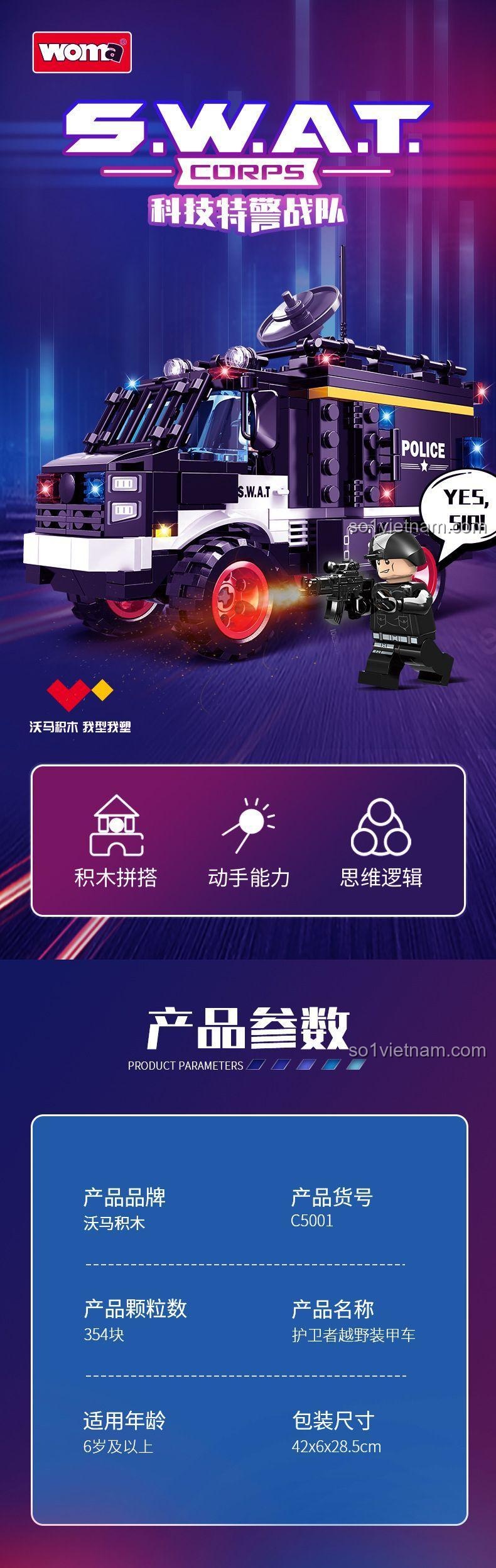 🌟 Giới Thiệu Xe Cảnh Sát Đặc Nhiệm SWAT WOMA C5001 – Biệt Đội Bảo Vệ Thành Phố!