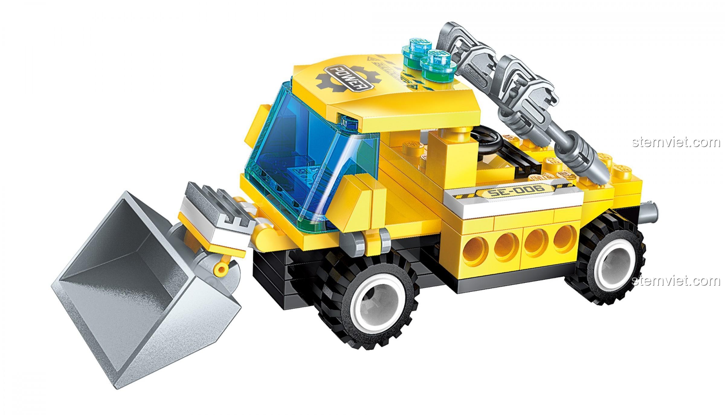 Bộ sản phẩm Xe Chiến Đấu 8 Trong 1 nổi bật với thiết kế lấy cảm hứng từ các loại xe quân sự và công trình mạnh mẽ. Mỗi mô hình nhỏ trong bộ sưu tập đều được chăm chút tỉ mỉ, từ màu sắc vàng cam rực rỡ kết hợp xanh dương và xám cá tính, đến các chi tiết mô phỏng chân thực như càng xúc, lưỡi cẩu, bánh xích, hay ống phóng.
