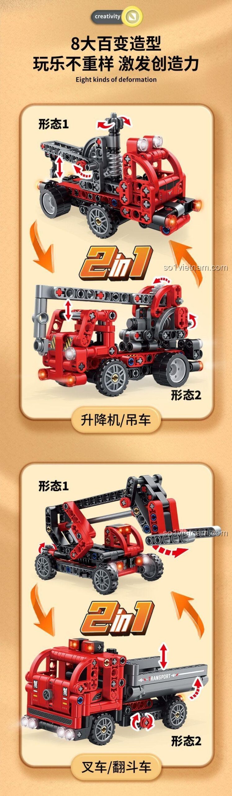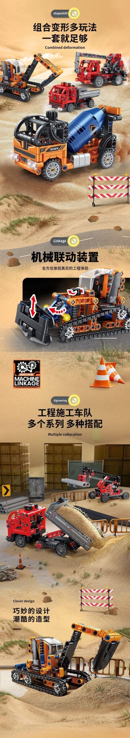 - Sáng tạo phiên bản mới: Khuyến khích bé tự do sáng tạo, kết hợp các bộ phận từ các mô hình khác nhau để tạo ra những chiếc xe công trình độc đáo, chưa từng có.