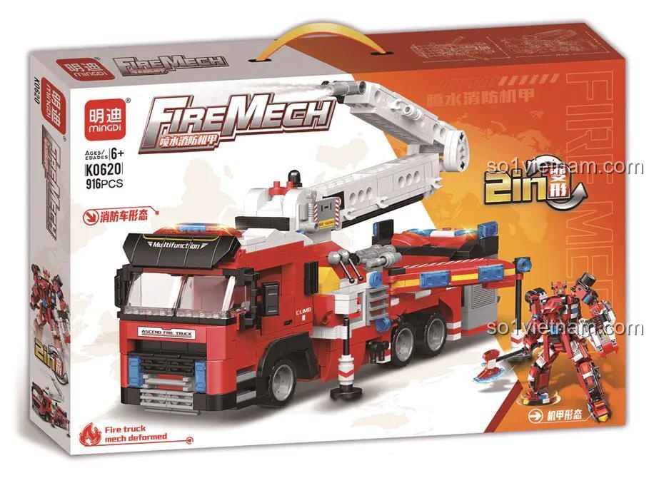 Bộ đồ chơi K0620 cho phép bé lắp ráp thành 2 dạng chính: xe cứu hỏa và robot chiến đấu.