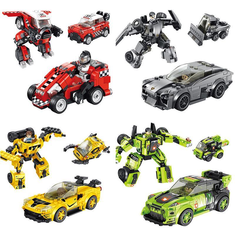 Bộ lắp ghép này cho phép bé biến hình thành 4 mẫu khác nhau, bao gồm xe đua tốc độ, robot chiến đấu, xe địa hình và xe đua F1, mang đến sự đa dạng và hứng thú khi chơi.