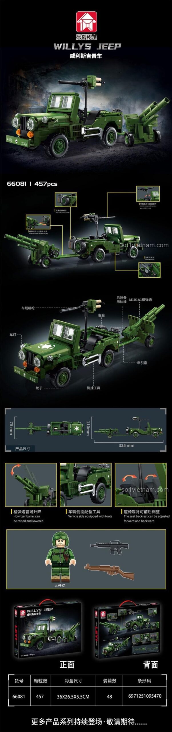 Đừng bỏ lỡ cơ hội sở hữu bộ lắp ghép Xe Jeep Willys Quân Sự Le-Q 66081 với những ưu đãi hấp dẫn: