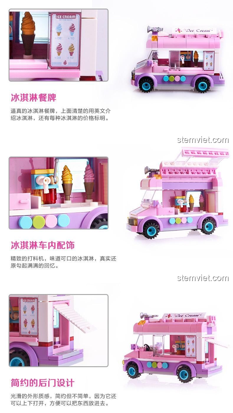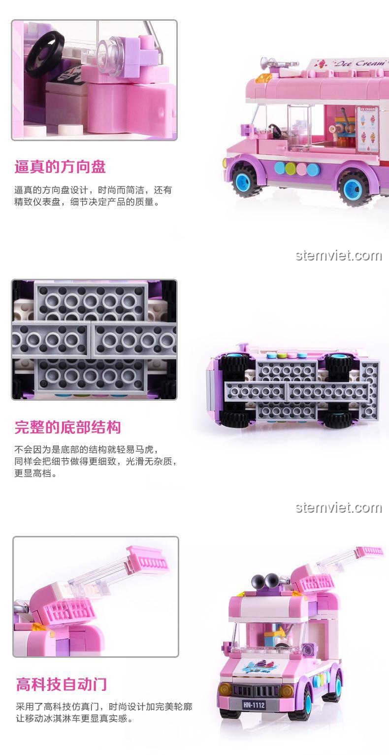 - Sáng tạo & Tư duy logic: Bé sẽ học cách tư duy logic để ghép nối các chi tiết, đồng thời phát huy tối đa khả năng sáng tạo để tạo ra những câu chuyện độc đáo xung quanh chiếc xe kem.