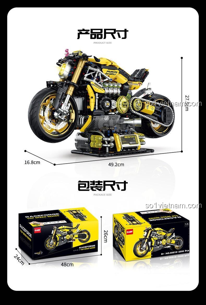 Kích thước mô hình Xe máy Cyberpunk Quái vật GULY 60519 sau khi lắp ráp là khoảng 49.2 x 16.8 x 27.5 cm (Dài x Rộng x Cao).